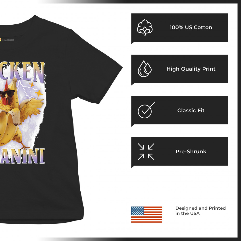 Chicken Bananini is meme absurdity with extra peel. Featuring a chicken emerging from a banana and rocking shades, this design blends cursed-core fashion, viral animal humor, Gen Z brainrot, and TikTok-style chaos. A must-have for fans of ironic mashups, surreal creatures, and internet-fueled nonsense.