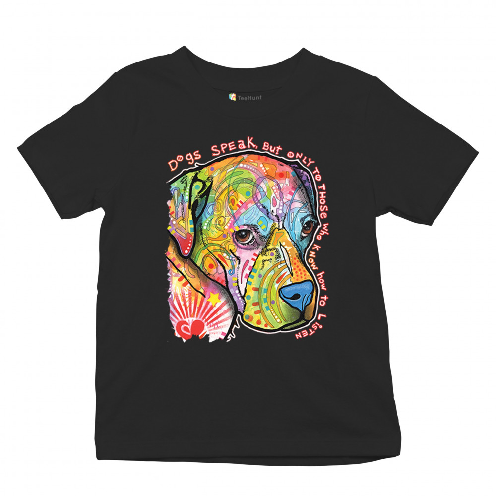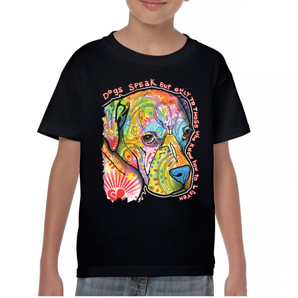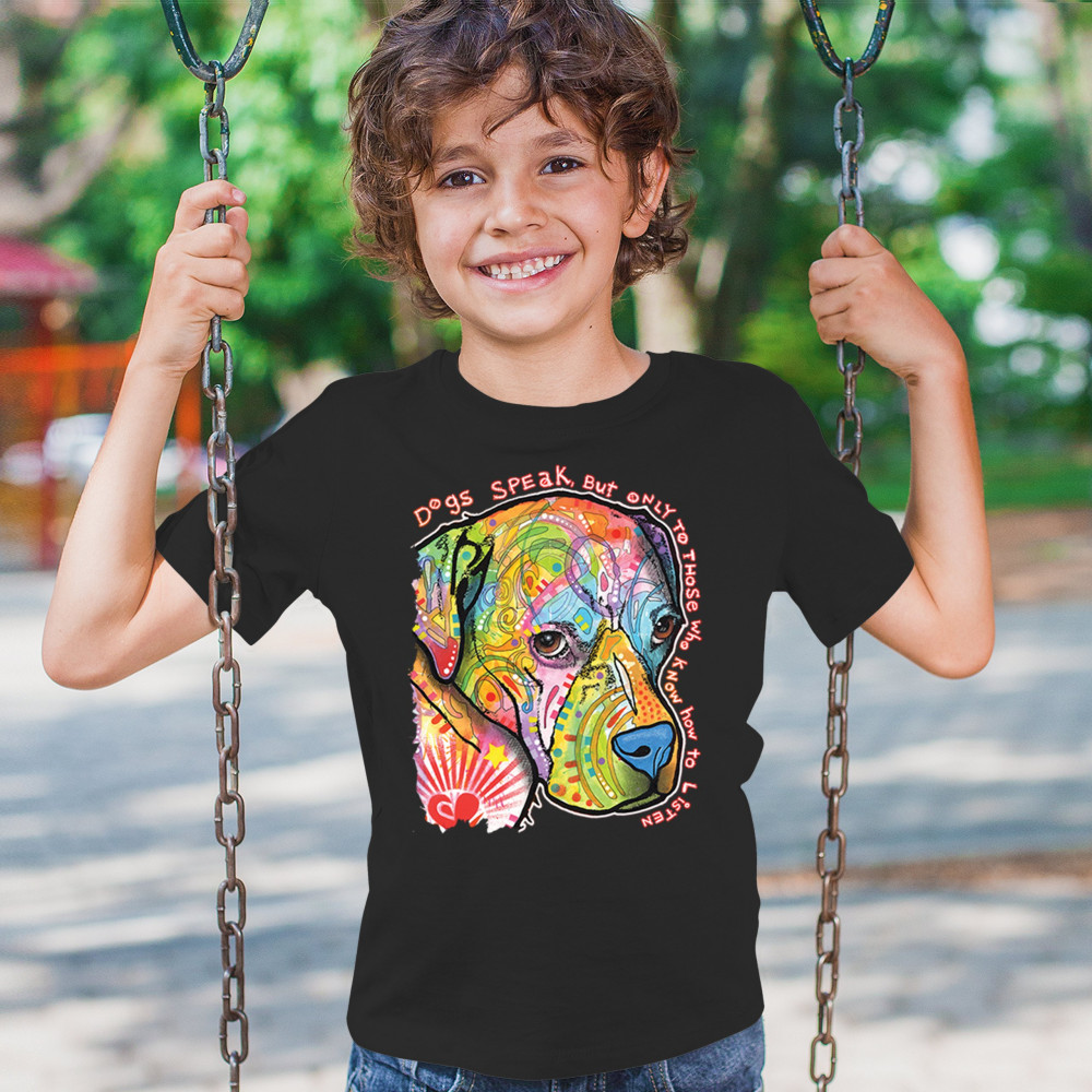 DOGS SPEAK TO THOSE WHO LISTEN youth t-shirt dean russo neon pet puppy kids black