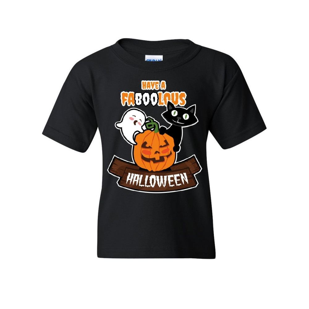 HAVE A FABOOLOUS HALLOWEEN have faboolous halloween youth t-shirt funny ghost pumpkin black cat kids tee black