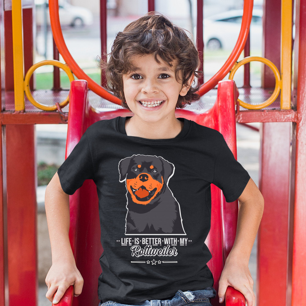LIFE IS BETTER WITH MY ROTTWEILER youth t-shirt rottie pet dog lover kids black