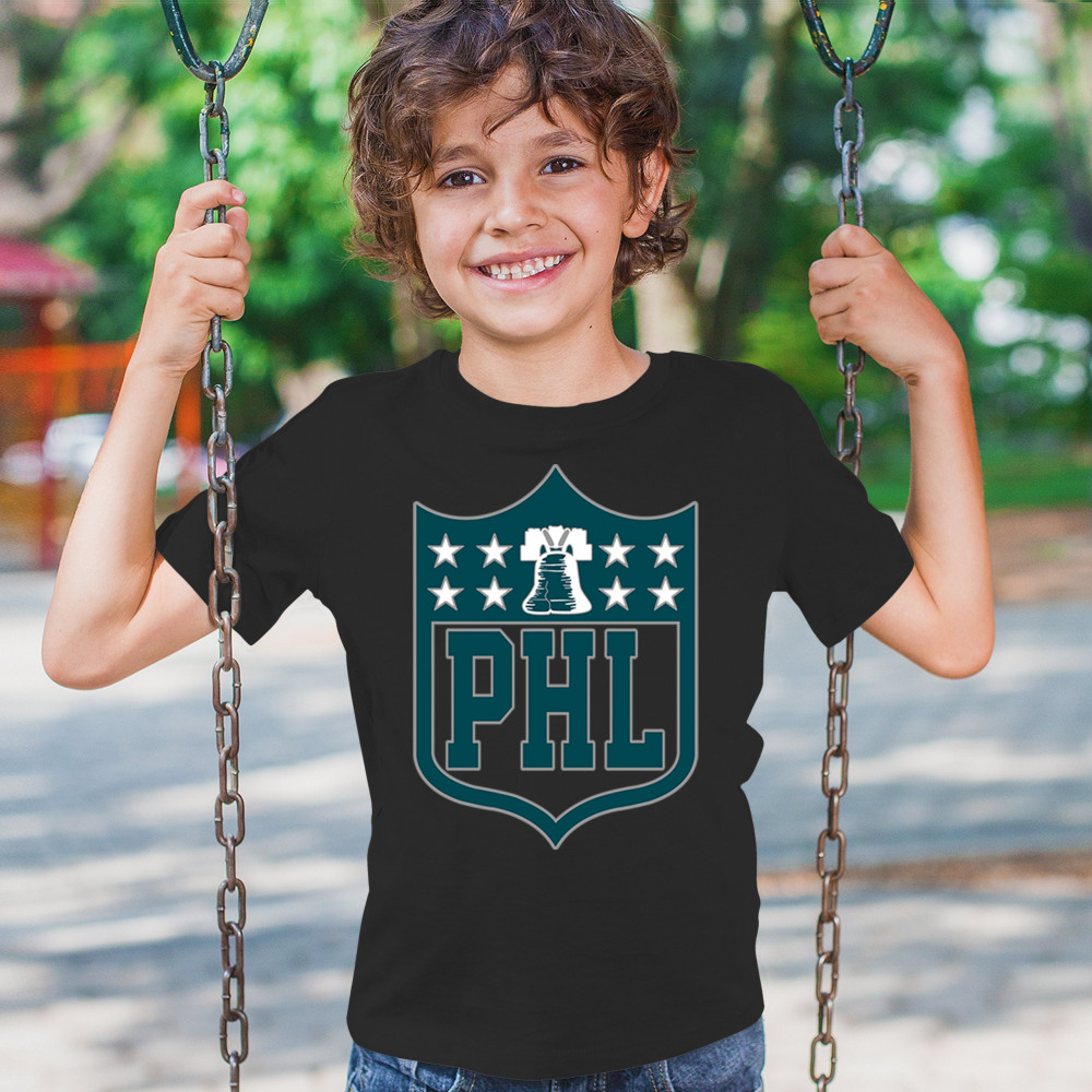 PHILADELPHIA SHIELD youth t-shirt birds football fan bleed green philly kids black