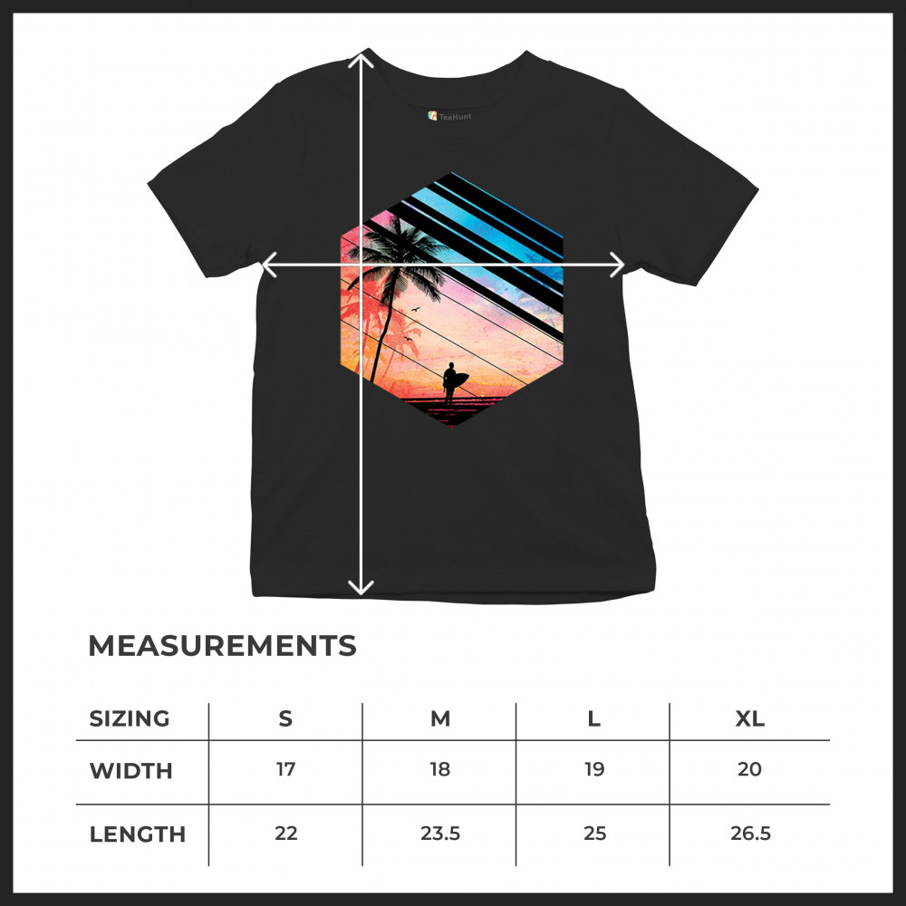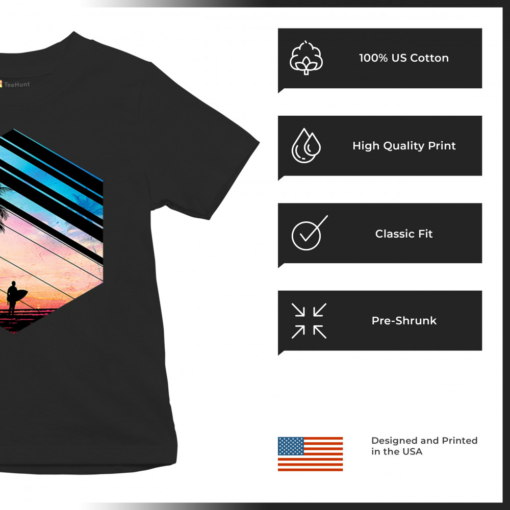Catch the vibe of endless summer with our surf-inspired tee. Featuring silhouetted palms, warm gradients, and cool geometric shapes, it’s a visual journey from the urban grind to tropical tranquility. This tee is for the soul surfers and dreamers, made to be as enduring as the memories of your last wave. It's more than apparel—it’s a horizon of possibilities. Add this staple to your collection and let the good times roll.