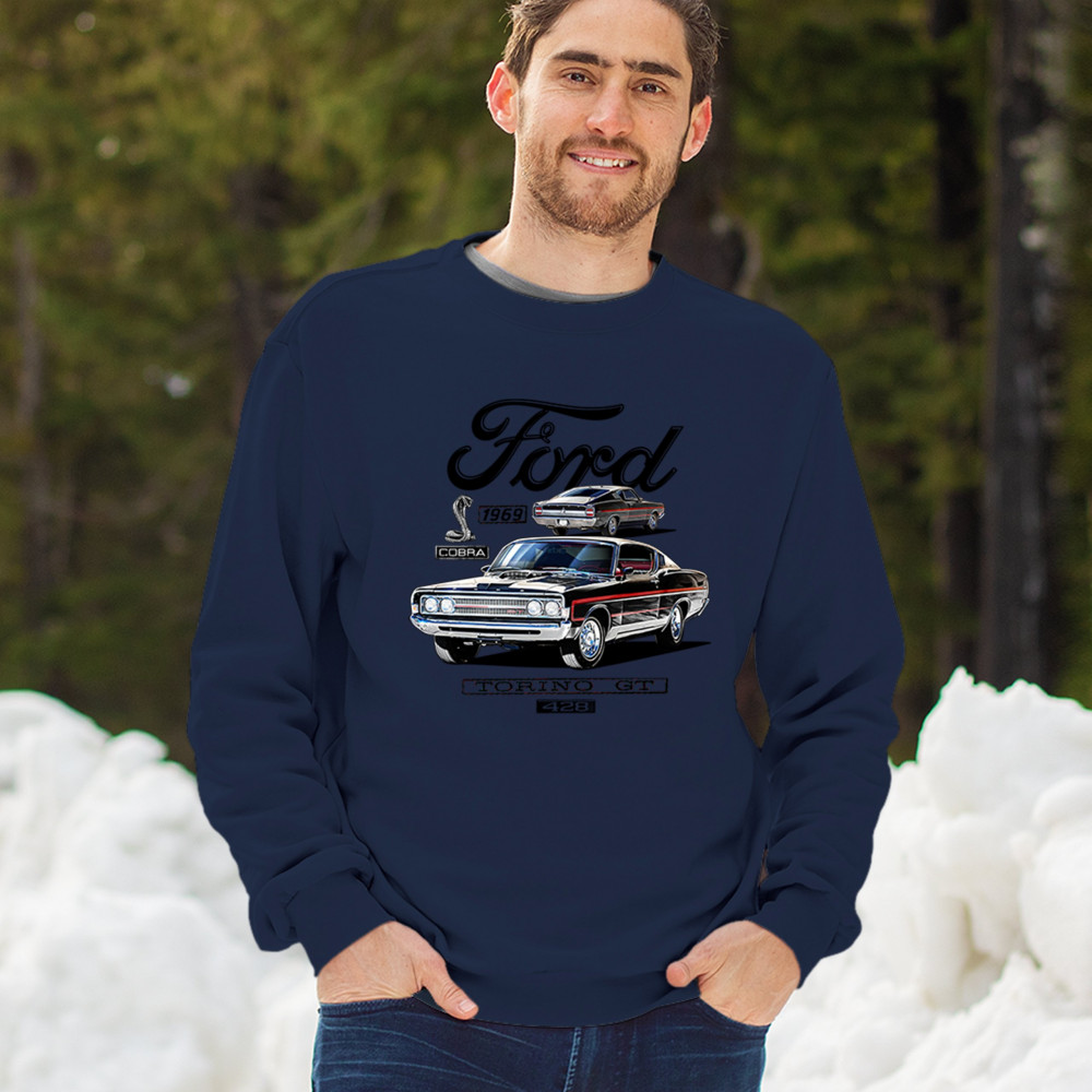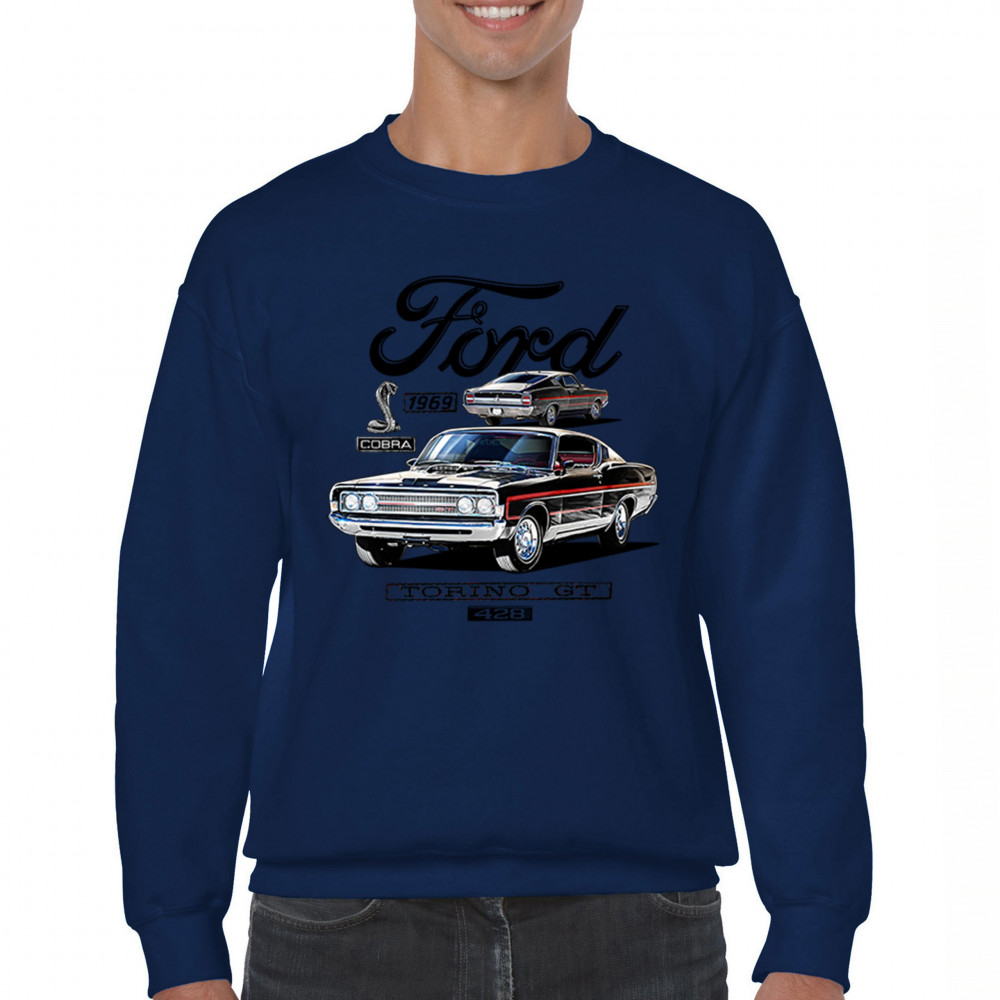 1969 Ford Torino GT Cobra design with racing stripes and Cobra badge—perfect for muscle car fans, Ford collectors, and show displays.