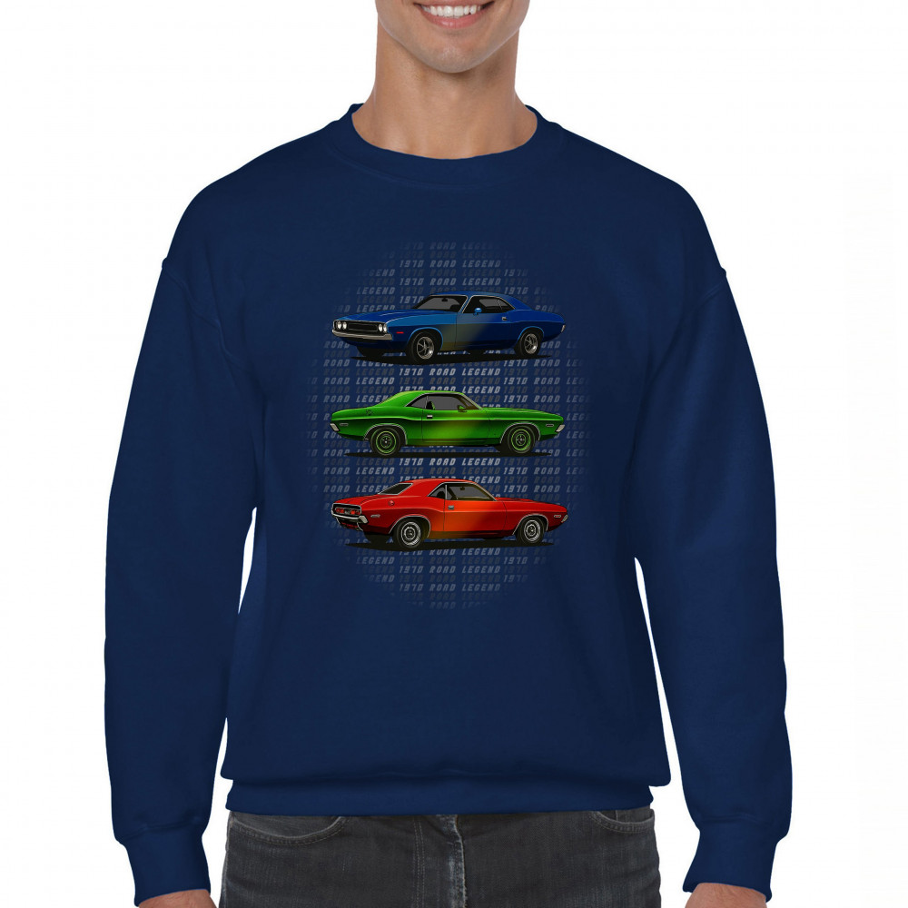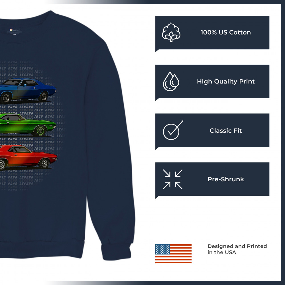Three bold 1970 muscle cars, stacked in red, green, and blue, celebrate vintage power and road legend status. This retro-inspired design captures the essence of American car culture—made for gearheads, V8 fans, and anyone who lives for classic performance, heritage, and style.