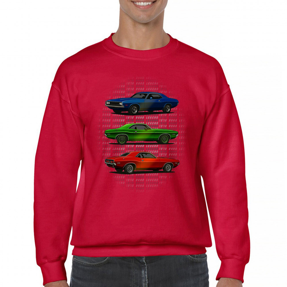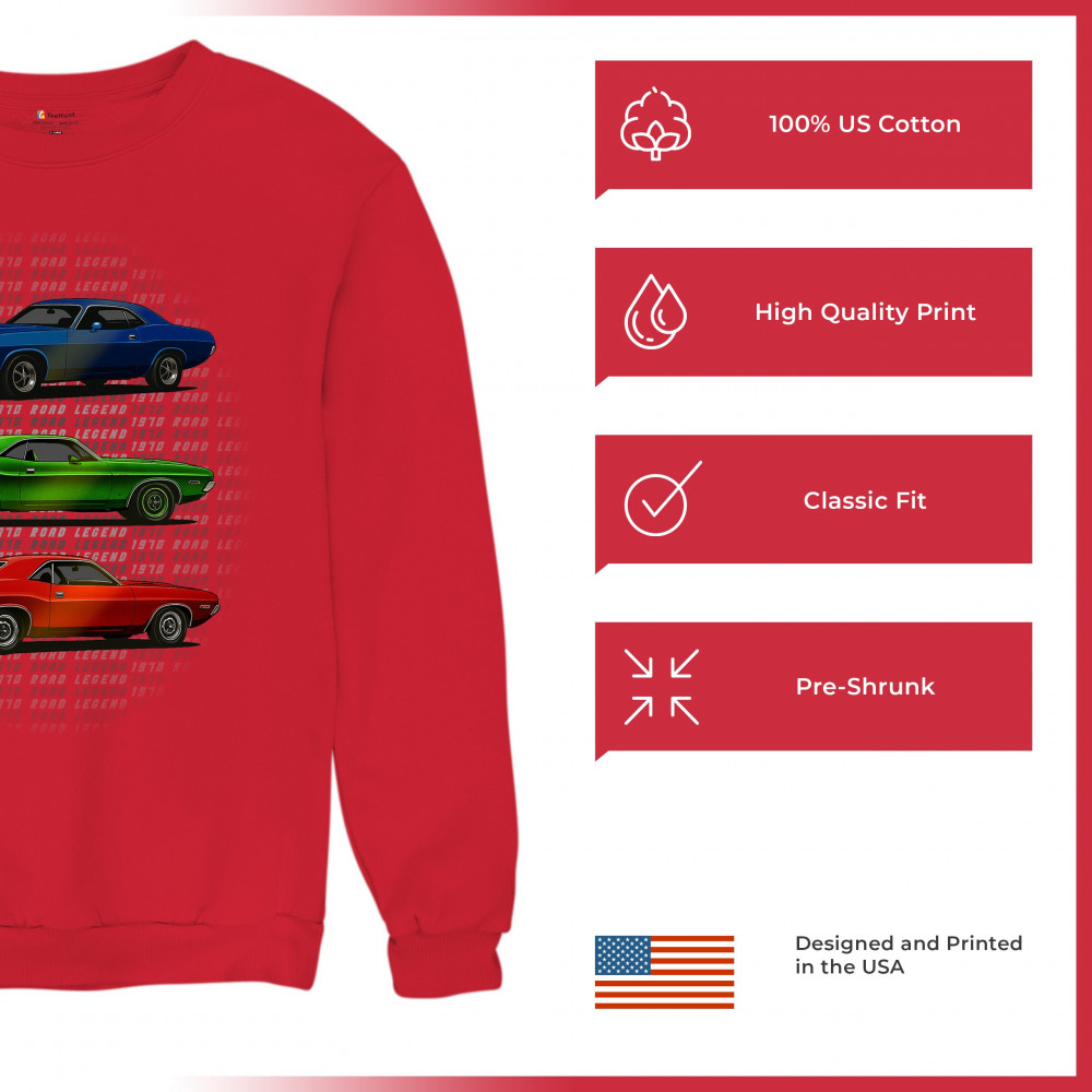 1970 ROAD LEGENDS MUSCLE CAR sweatshirt american vintage classic ride crewneck red