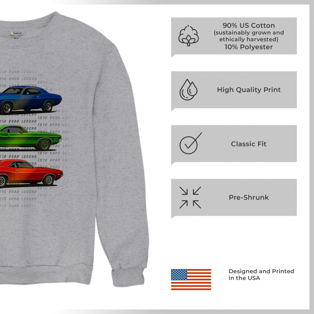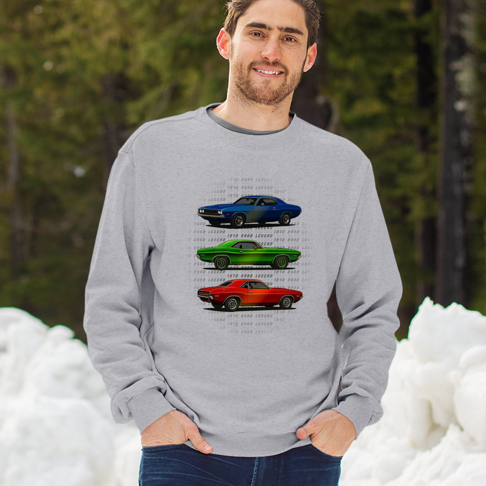 Three bold 1970 muscle cars, stacked in red, green, and blue, celebrate vintage power and road legend status. This retro-inspired design captures the essence of American car culture—made for gearheads, V8 fans, and anyone who lives for classic performance, heritage, and style.