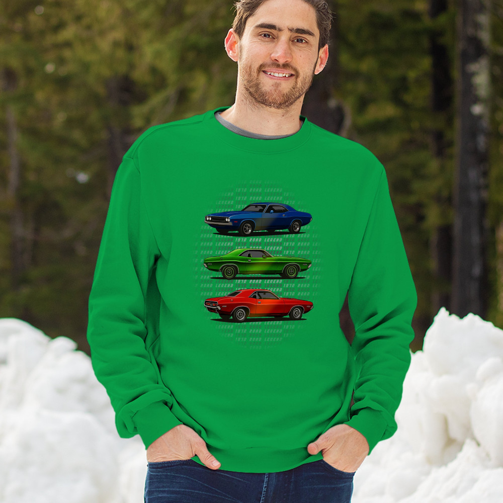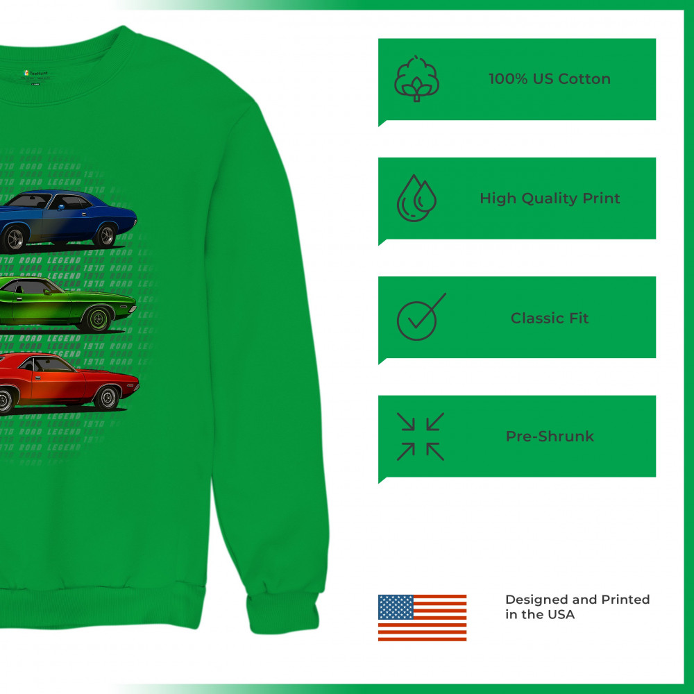 1970 ROAD LEGENDS MUSCLE CAR sweatshirt american vintage classic ride crewneck green