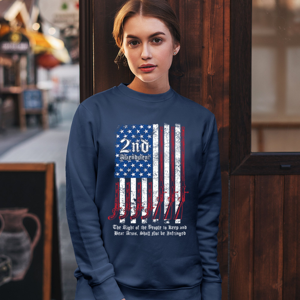 2ND AMENDMENT AMERICAN FLAG sweatshirt right to bear arms patriotic crewneck navy blue