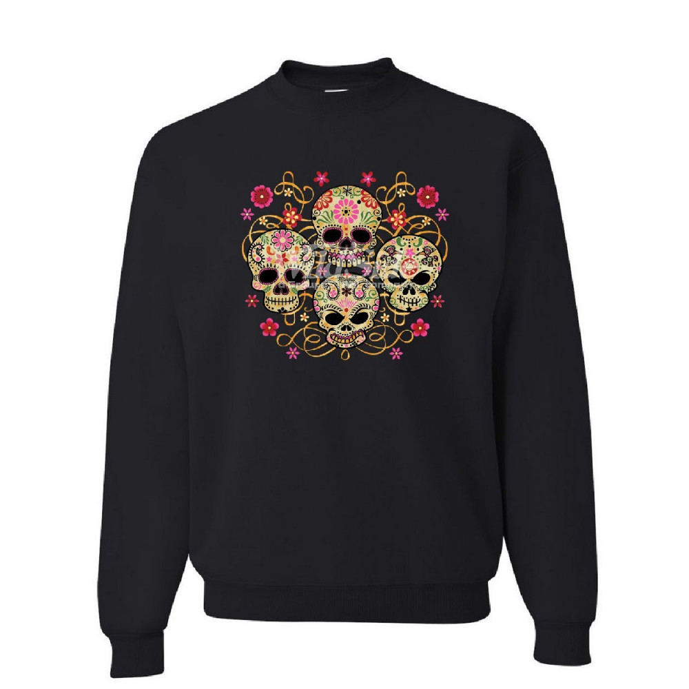 4 CUTE SUGAR SKULLS sweatshirt calaveras dia de los muertos mexico sweater black