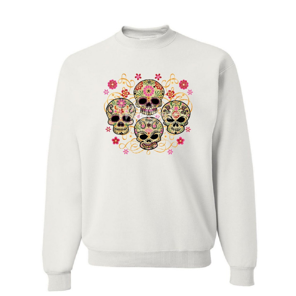 4 CUTE SUGAR SKULLS sweatshirt calaveras dia de los muertos mexico sweater white