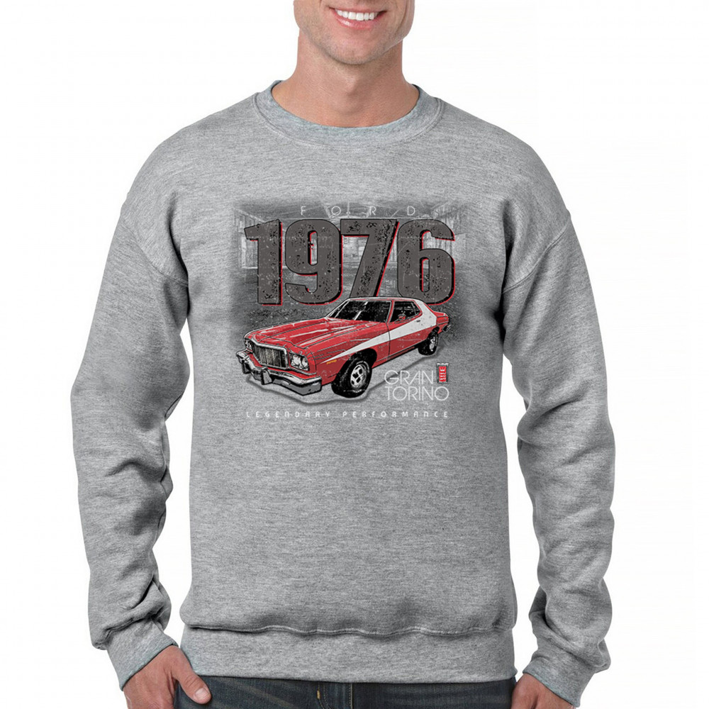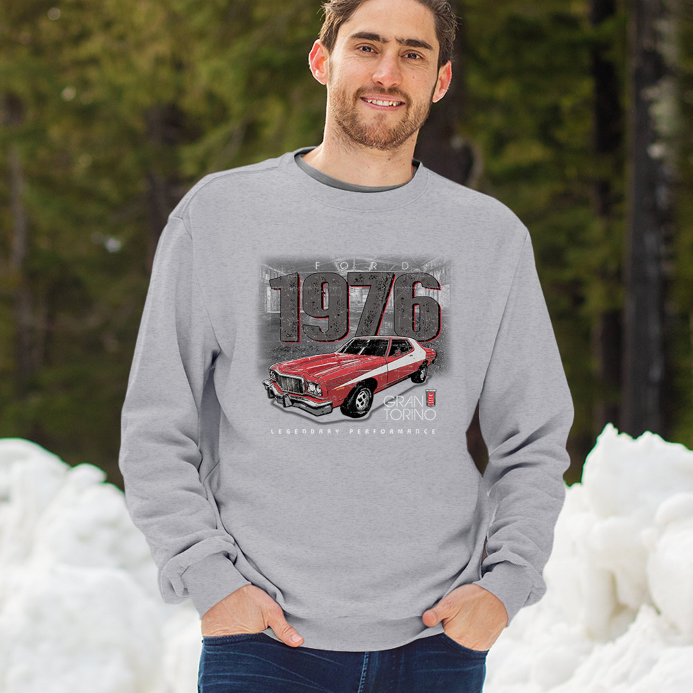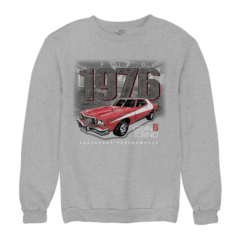 1976 Ford Gran Torino design with red and white retro style. Perfect for muscle car fans, Ford lovers, and classic car event gear.