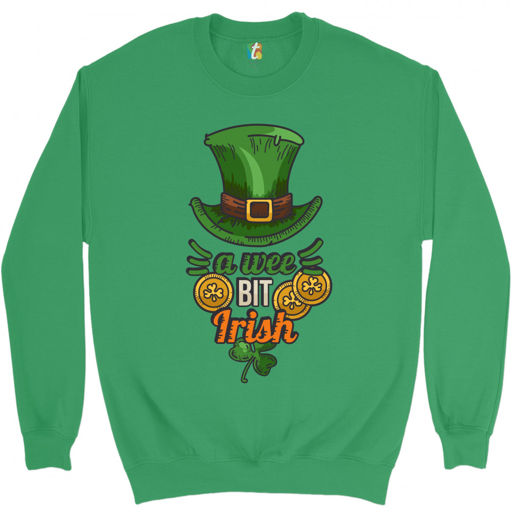 A WEE BIT IRISH sweatshirt st. patrick's day shamrock leprechaun hat crewneck green