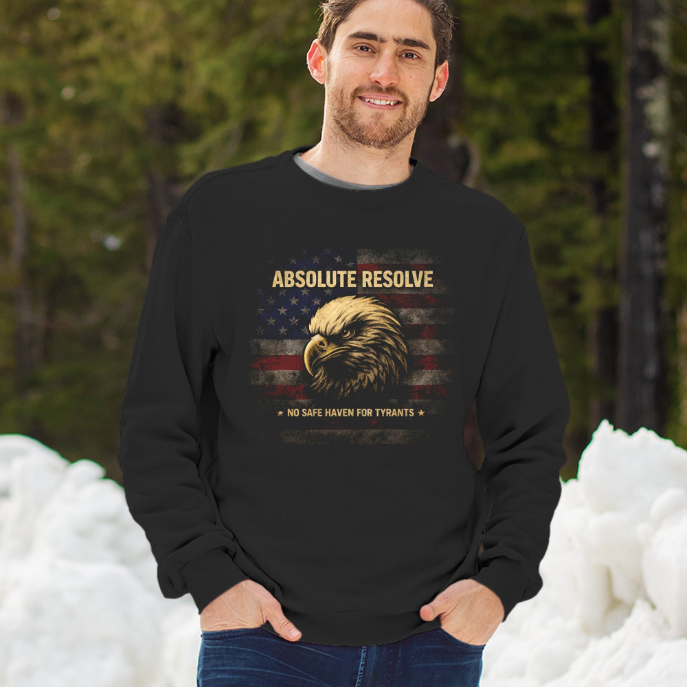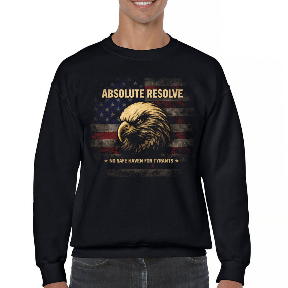 ABSOLUTE RESOLVE crewneck sweatshirt american flag bald eagle military force black