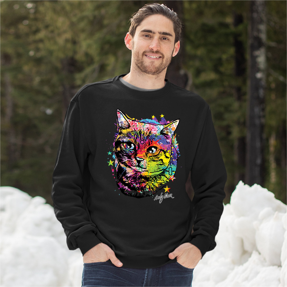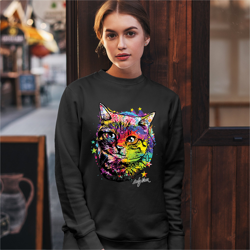 ADORABLE KITTEN sweatshirt neon multicolor kitty andy maxx cat lover crewneck black