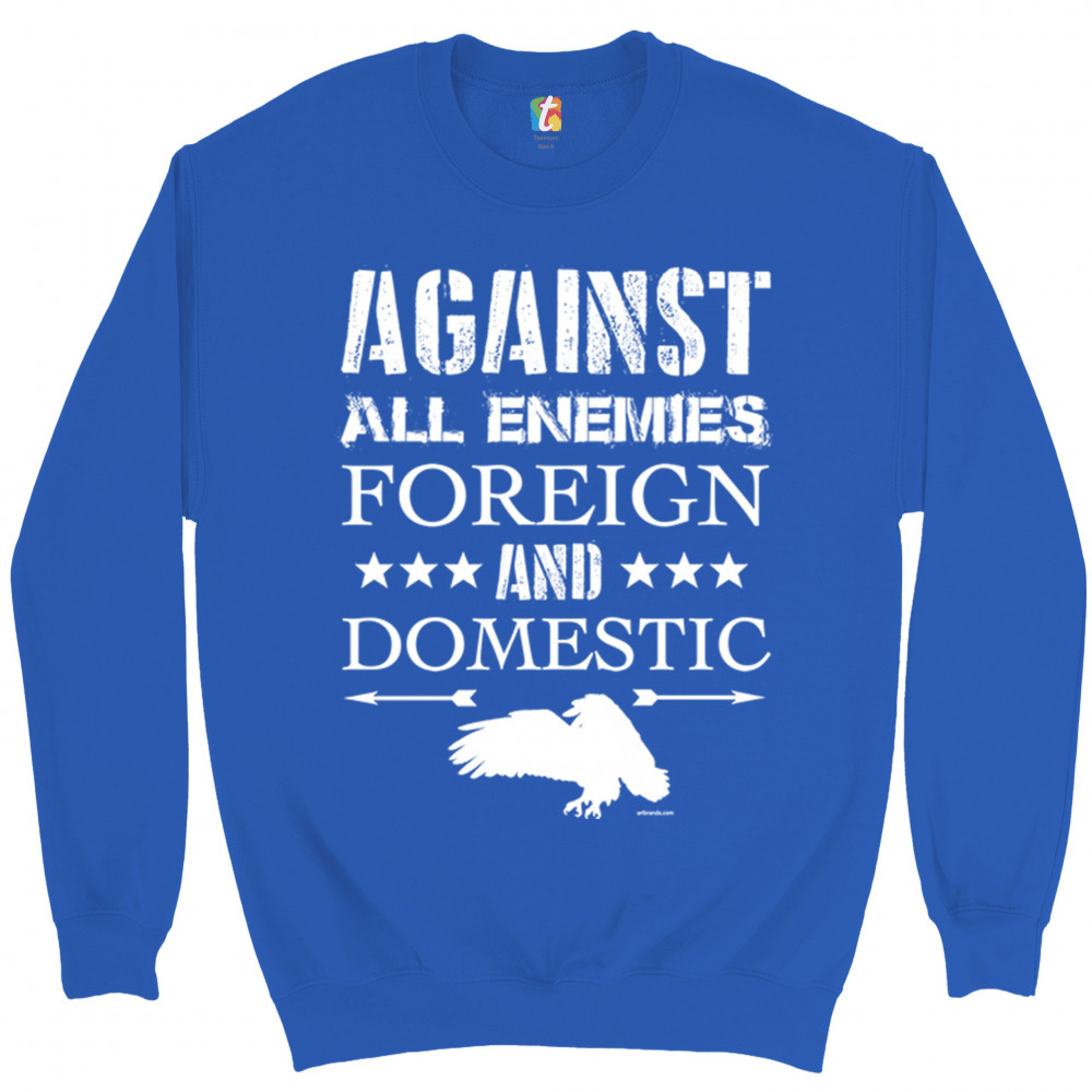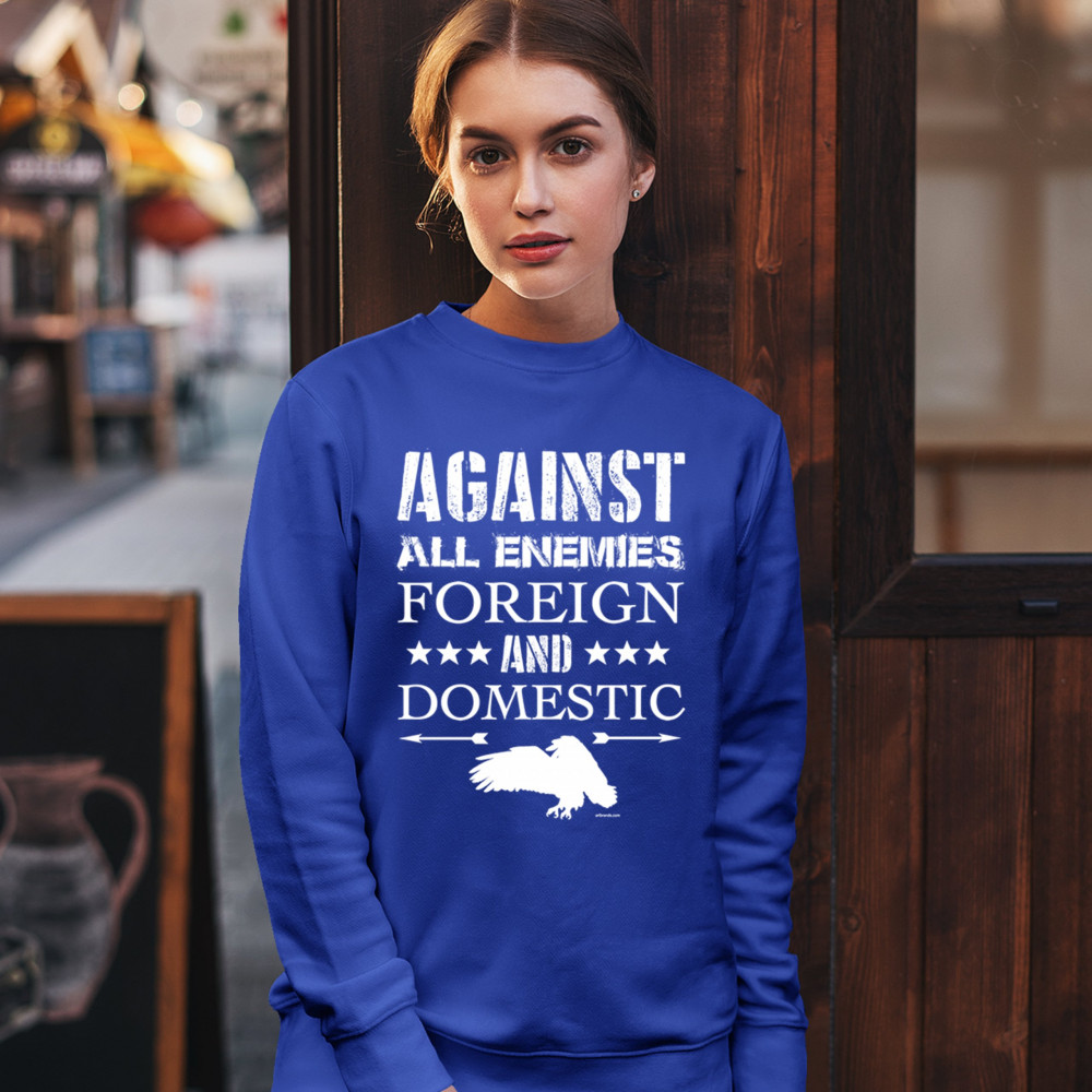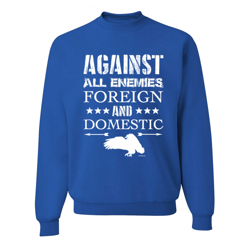 AGAINST ALL ENEMIES FOREIGN AND DOMESTIC sweatshirt patriotic veteran crewneck royal blue