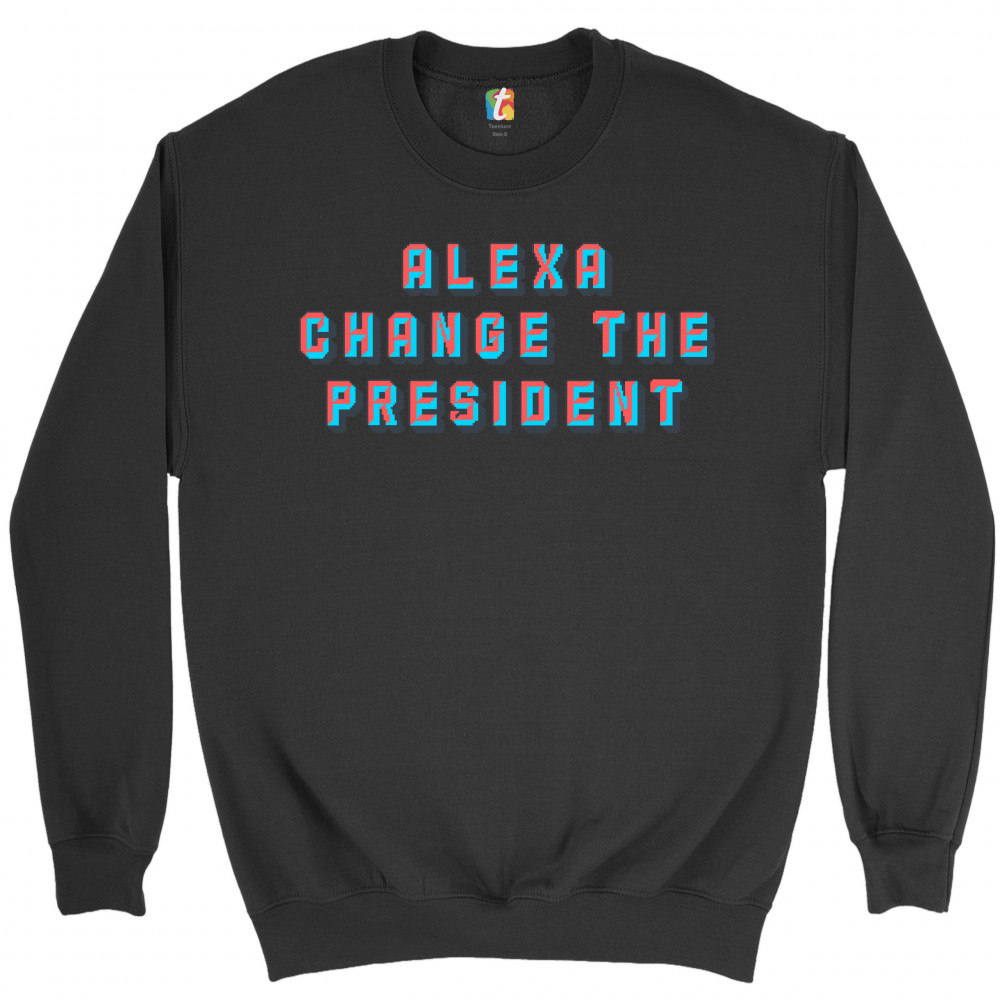 A print saying "Alexa Change the President". A great choice to wear to a Trump rally or give as a gift to a Donald Trump supporter before 2024 presidential elections.