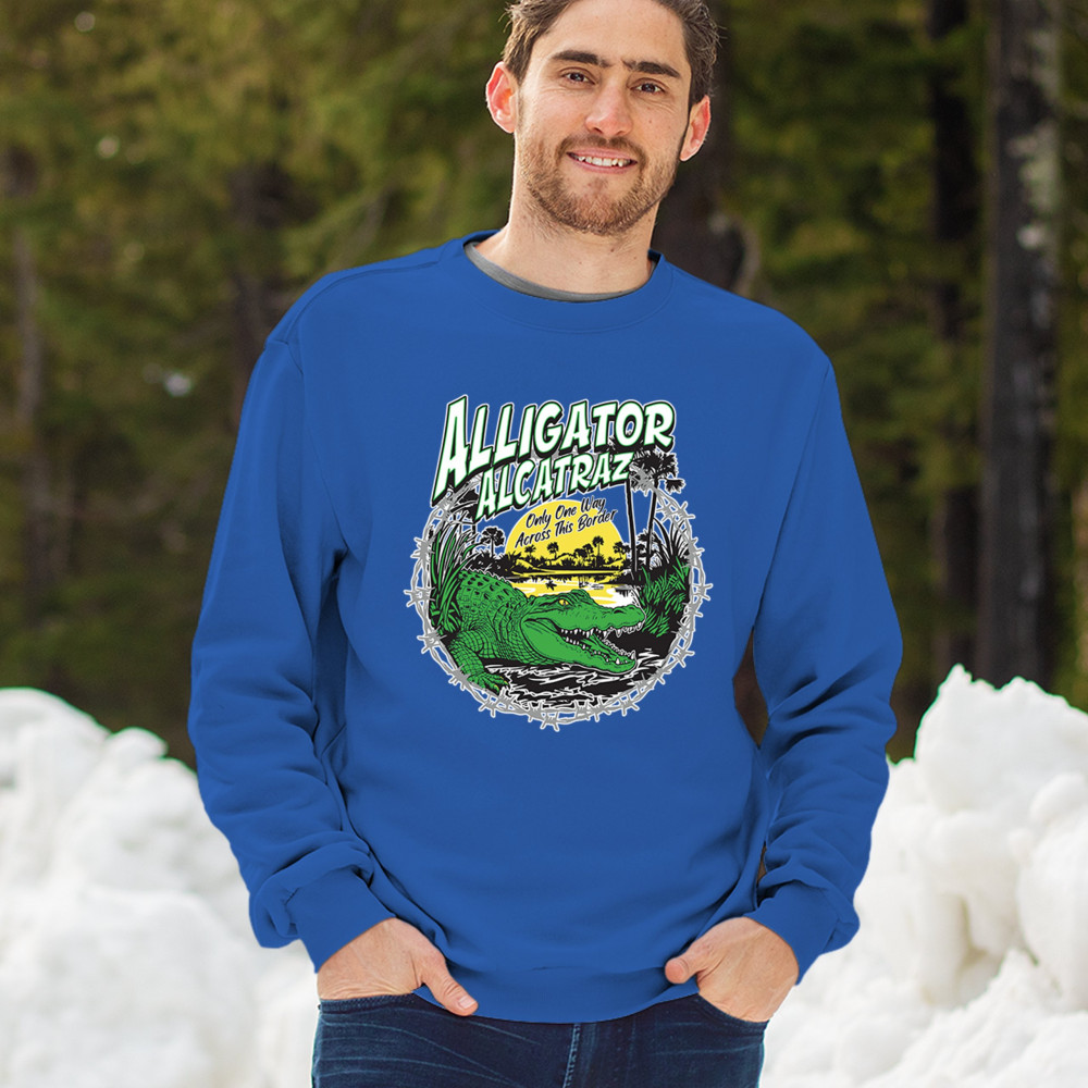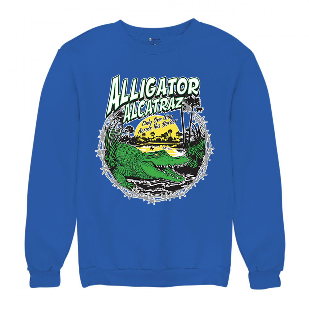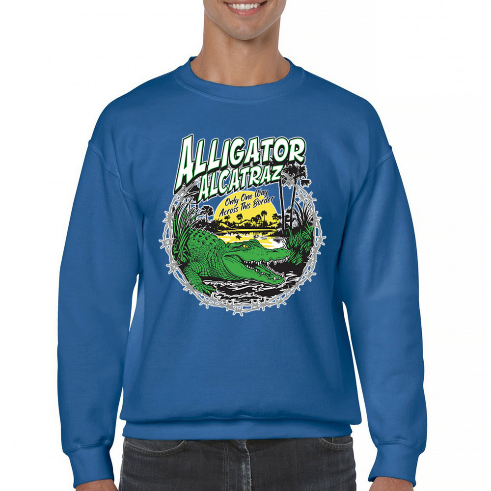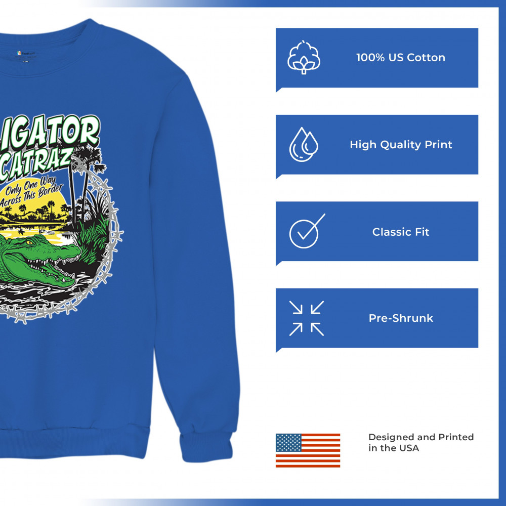 Alligator Alcatraz design with border security message. For conservative, Republican, and patriotic Americans who stand for America First values.