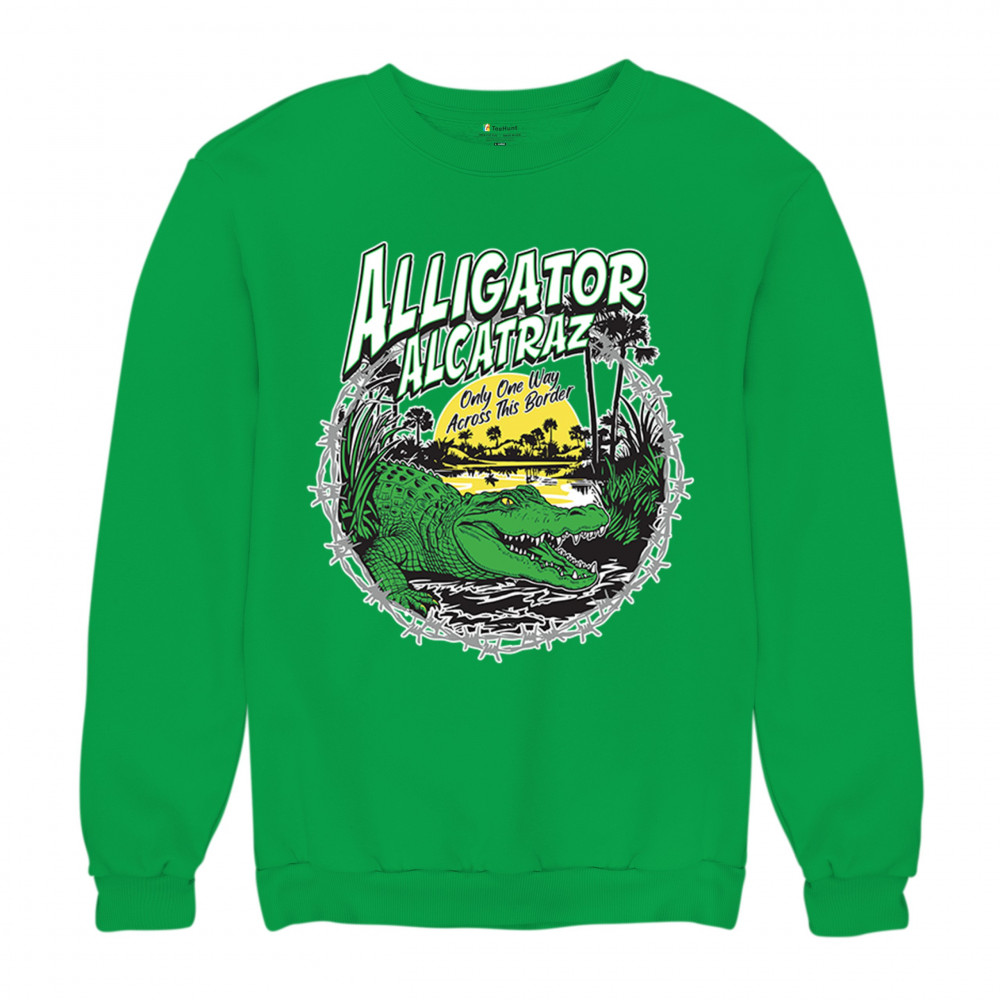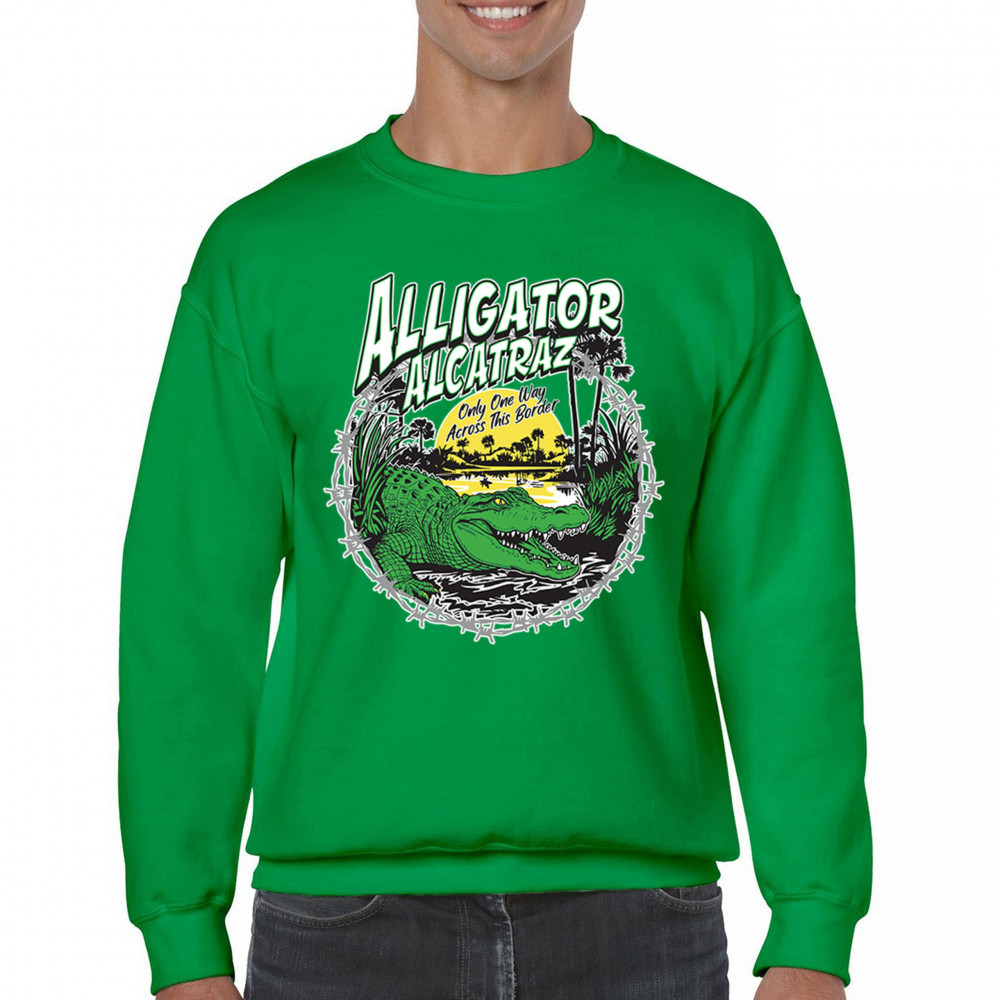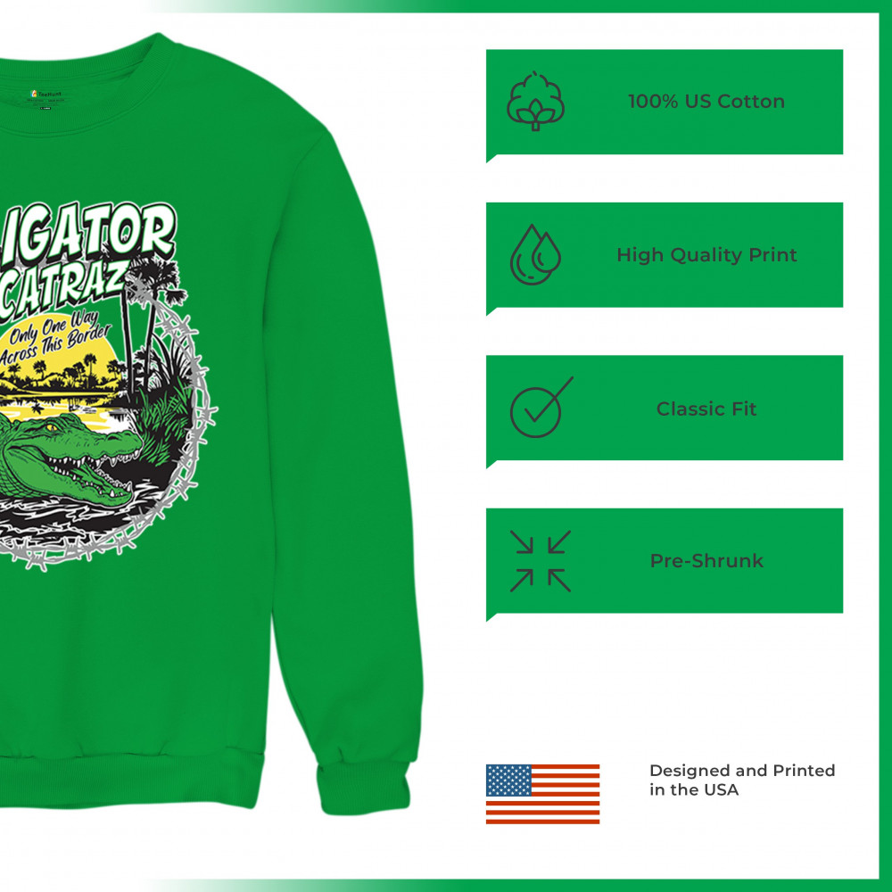 Alligator Alcatraz design with border security message. For conservative, Republican, and patriotic Americans who stand for America First values.