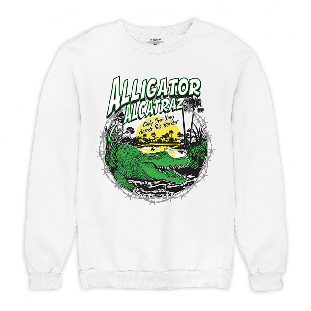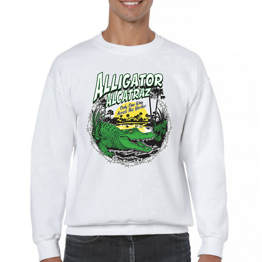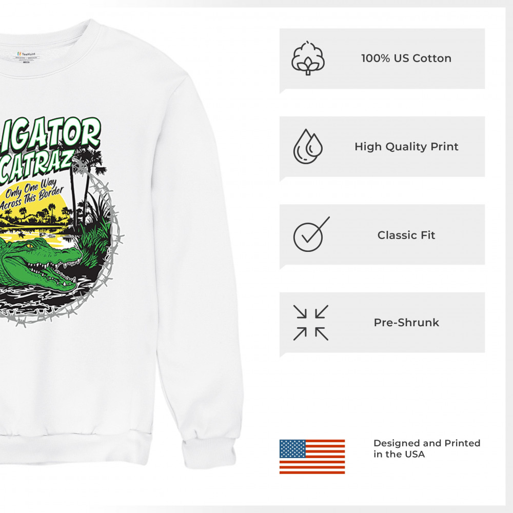 Alligator Alcatraz design with border security message. For conservative, Republican, and patriotic Americans who stand for America First values.
