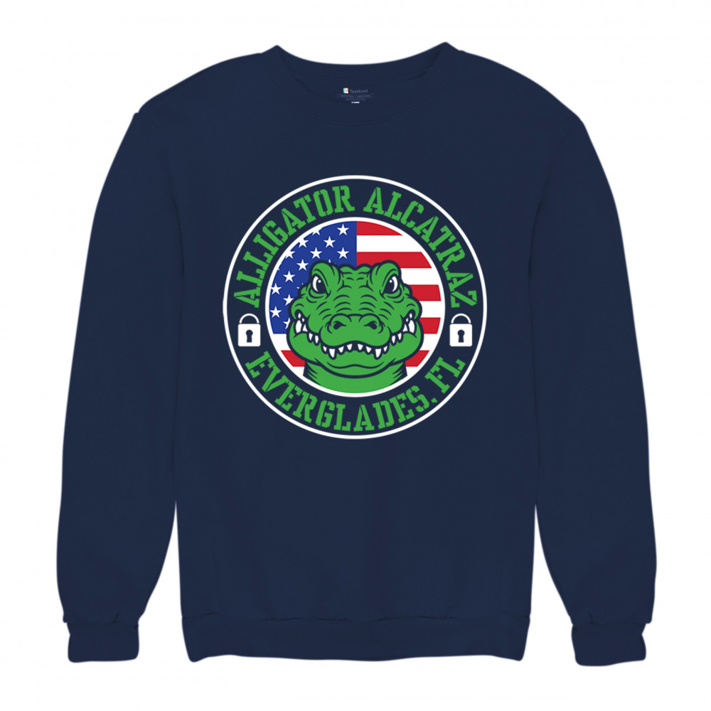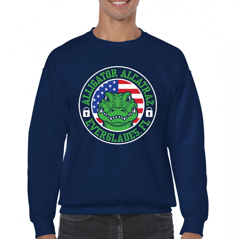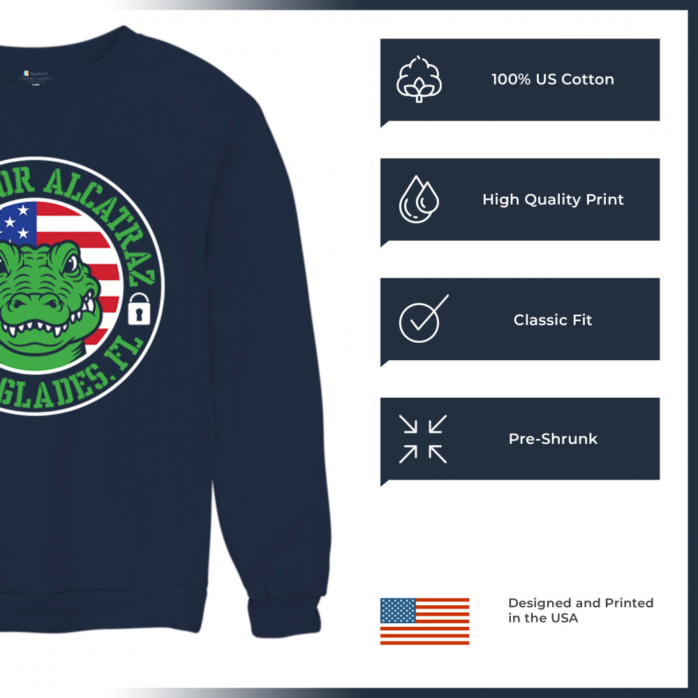 Bold Alligator Alcatraz design with USA flag and conservative message. Patriotic, America First, and proud to take a stand for national values.