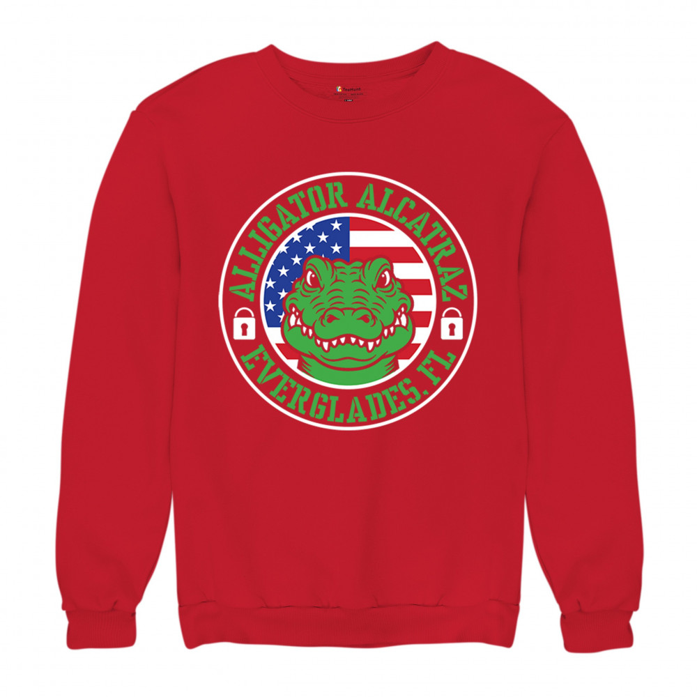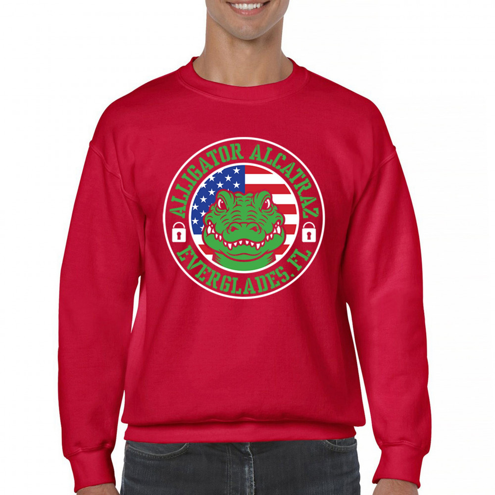 Bold Alligator Alcatraz design with USA flag and conservative message. Patriotic, America First, and proud to take a stand for national values.