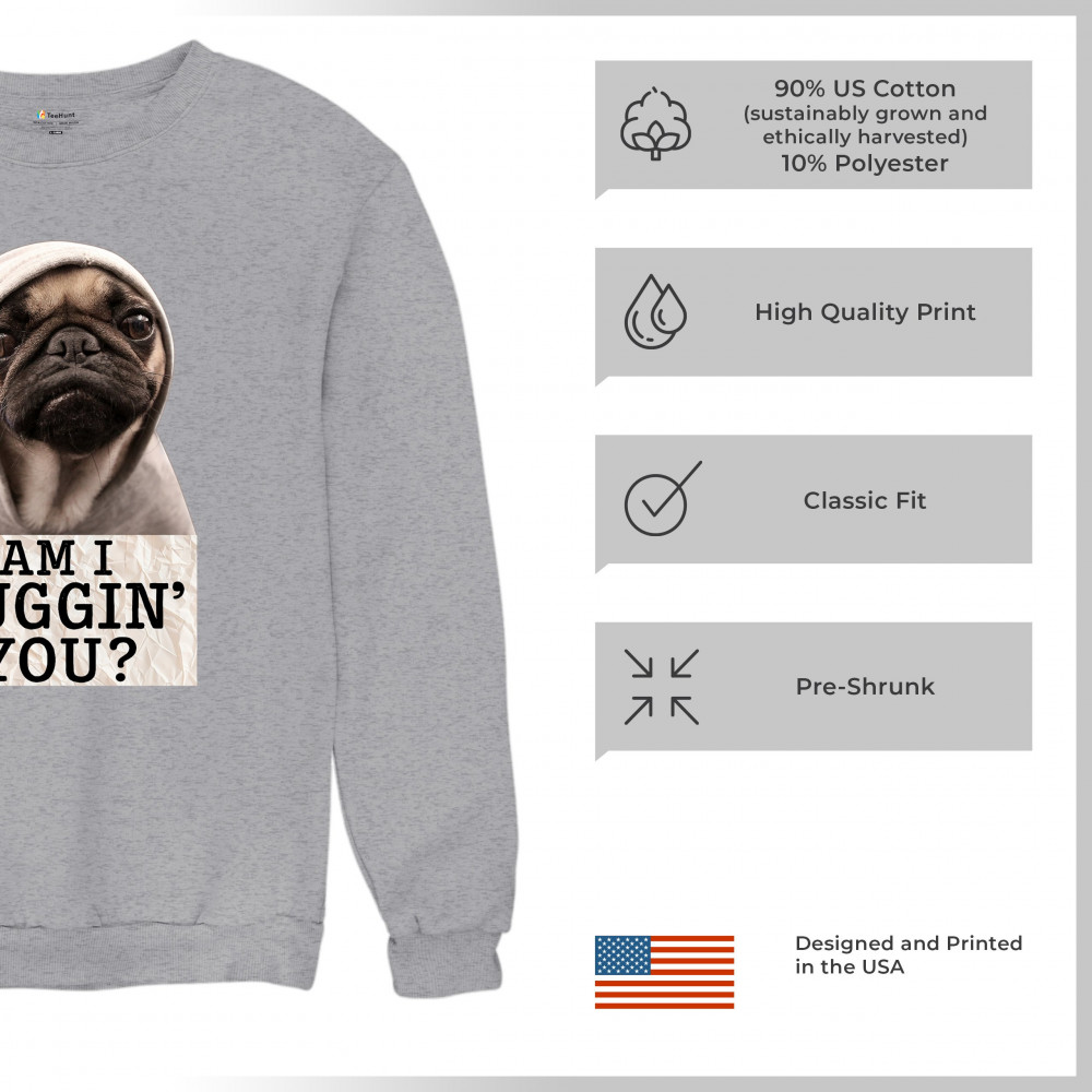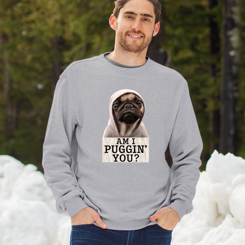 AM I PUGGIN YOU crewneck sweatshirt funny pug puppy dog mom pet pug dad gray