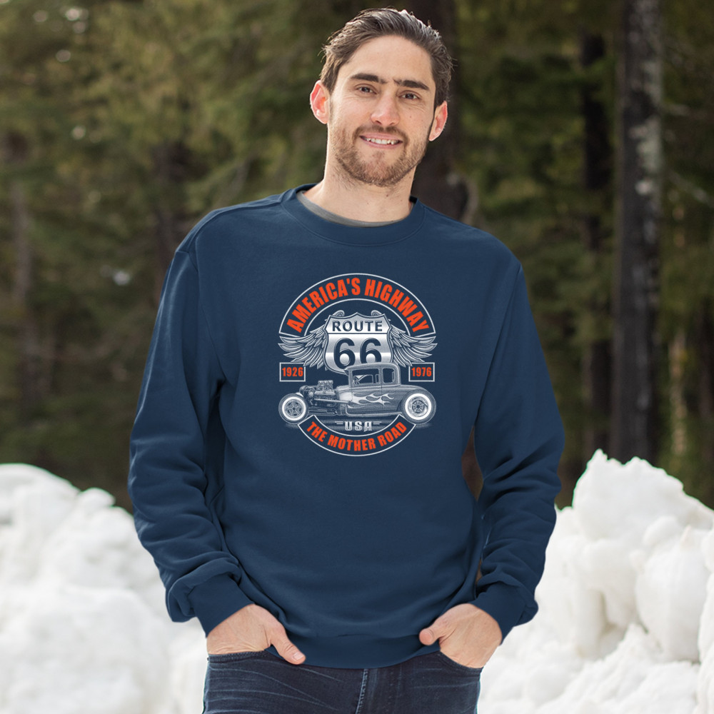 AMERICA'S HIGHWAY sweatshirt route 66 the mother road hot rod crewneck navy blue