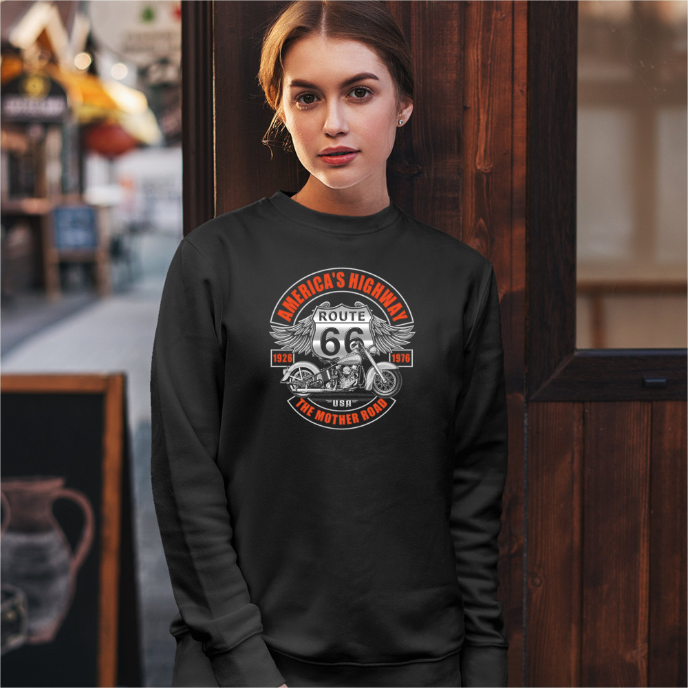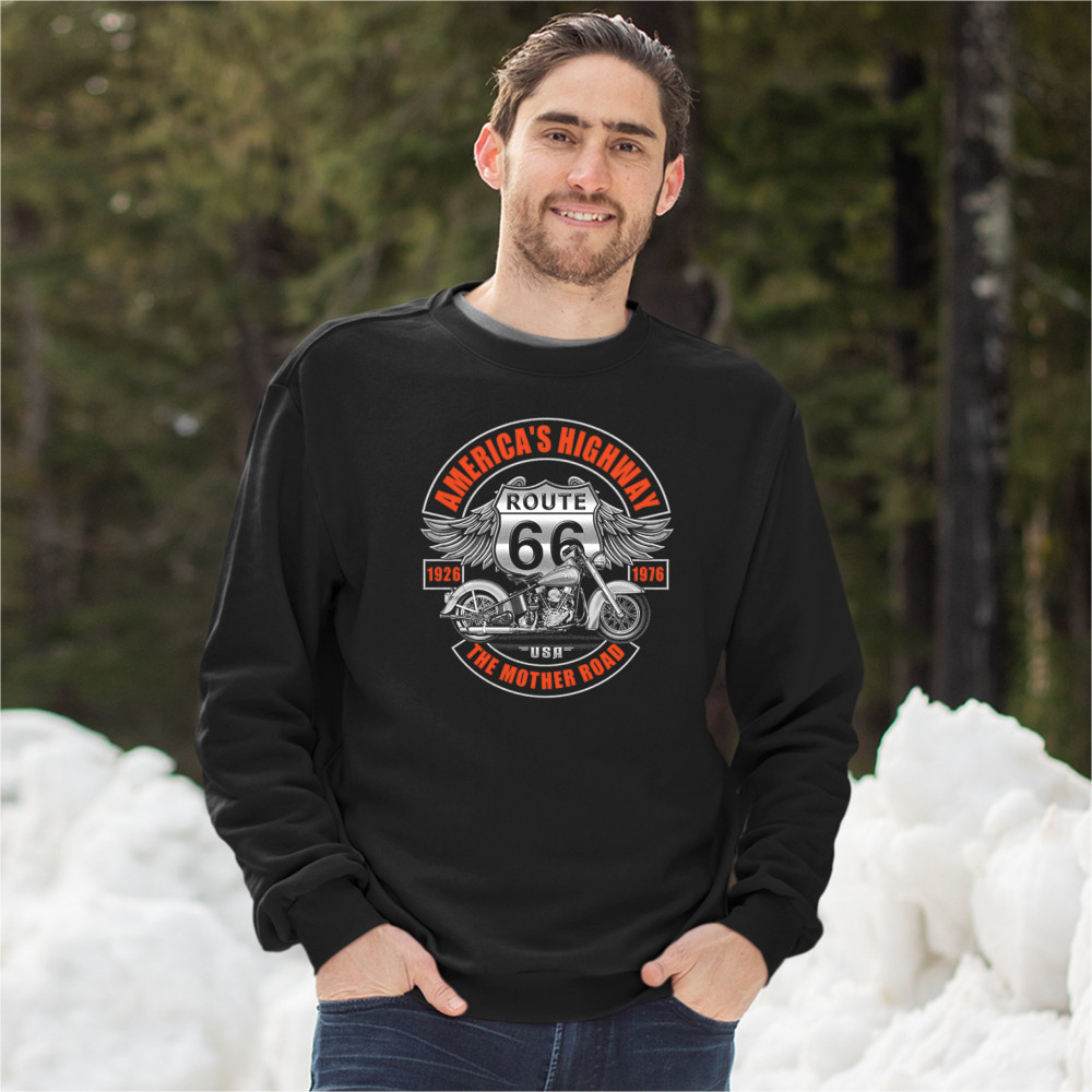 AMERICA'S HIGHWAY THE MOTHER ROAD sweatshirt route 66 biker motorcycle crewneck black