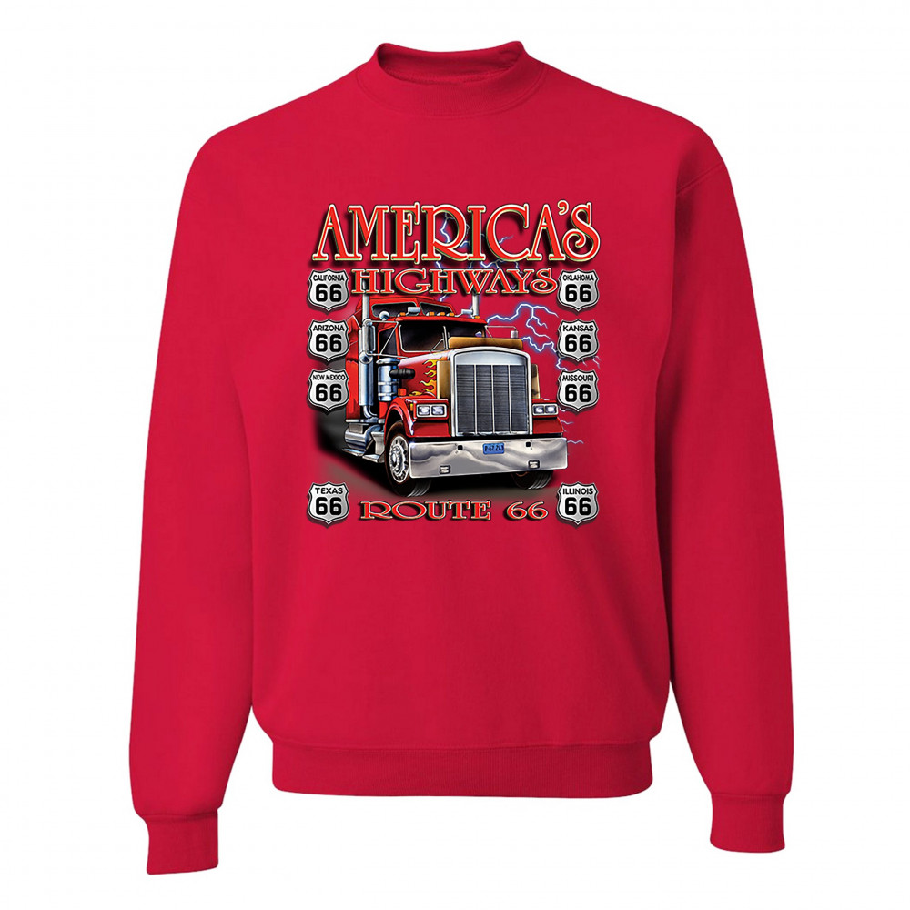 AMERICA'S HIGHWAYS ROUTE 66 sweatshirt truck driver mechanic teamster crewneck red