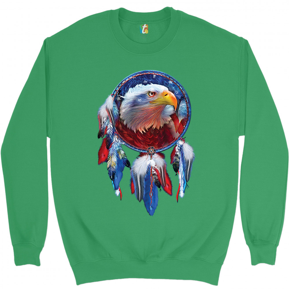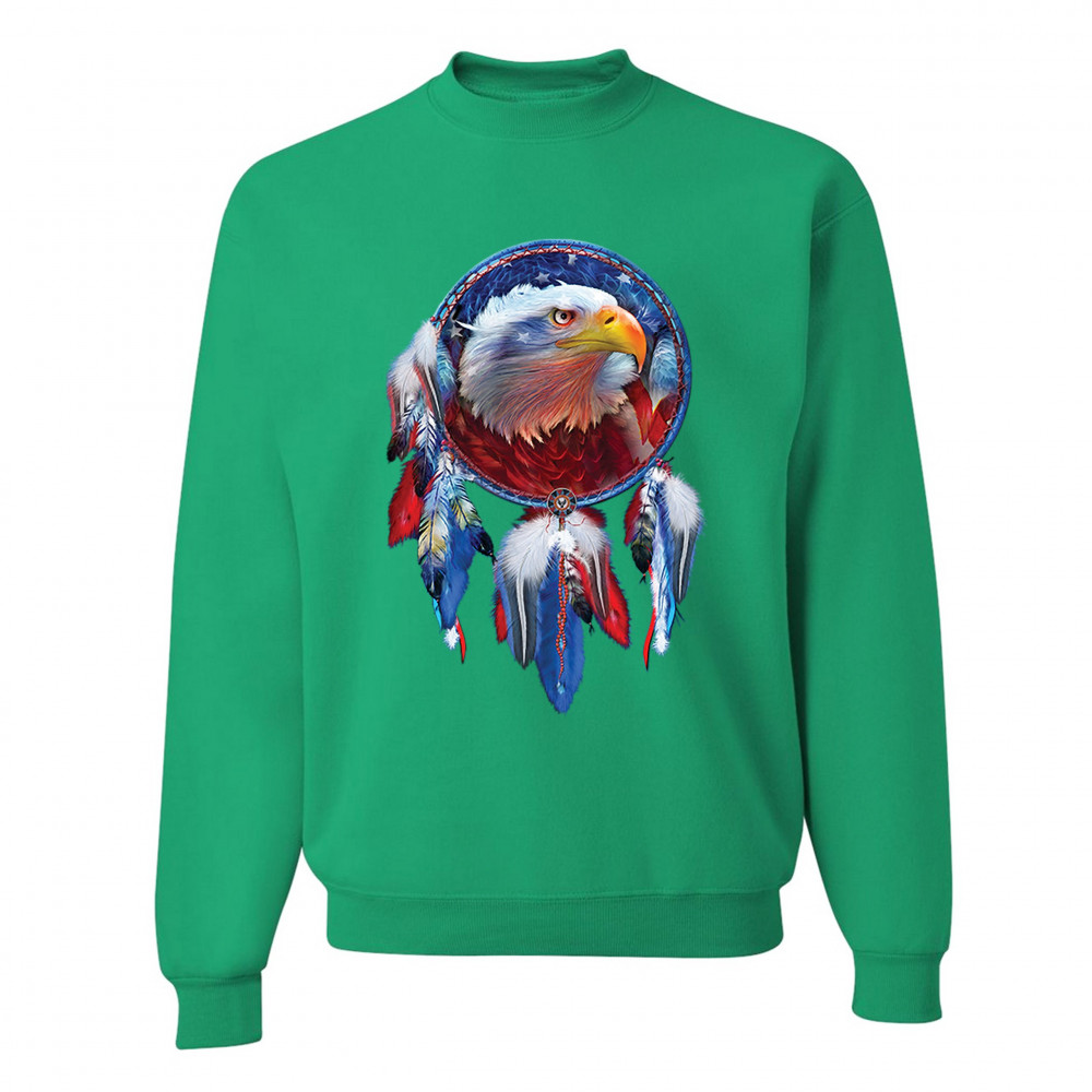 AMERICAN BALD EAGLE DREAMCATCHER sweatshirt native american patriotic crewneck green
