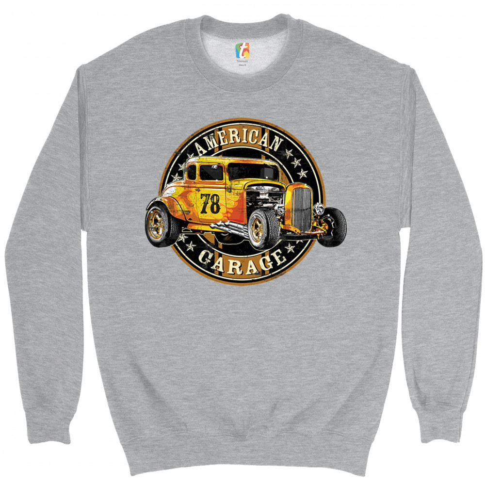 AMERICAN GARAGE sweatshirt retro hot rod vintage american muscle crewneck gray