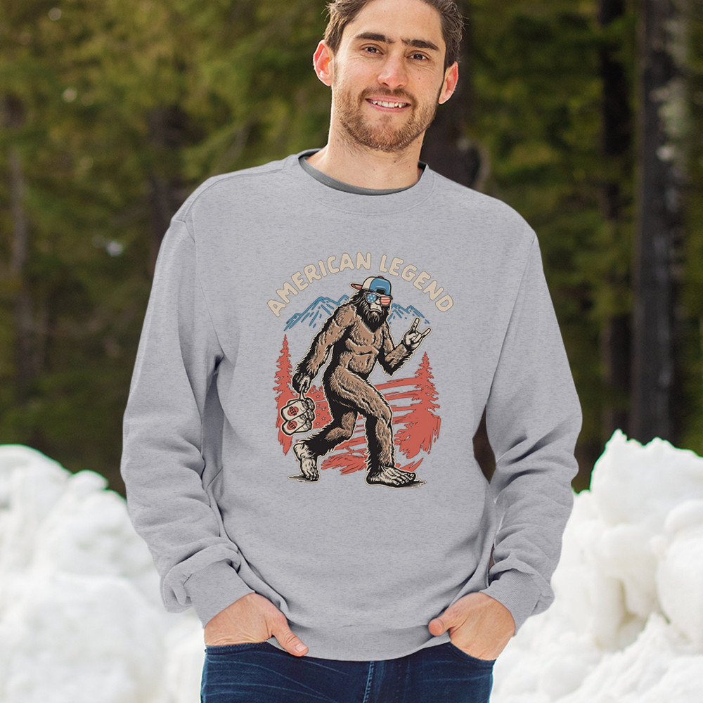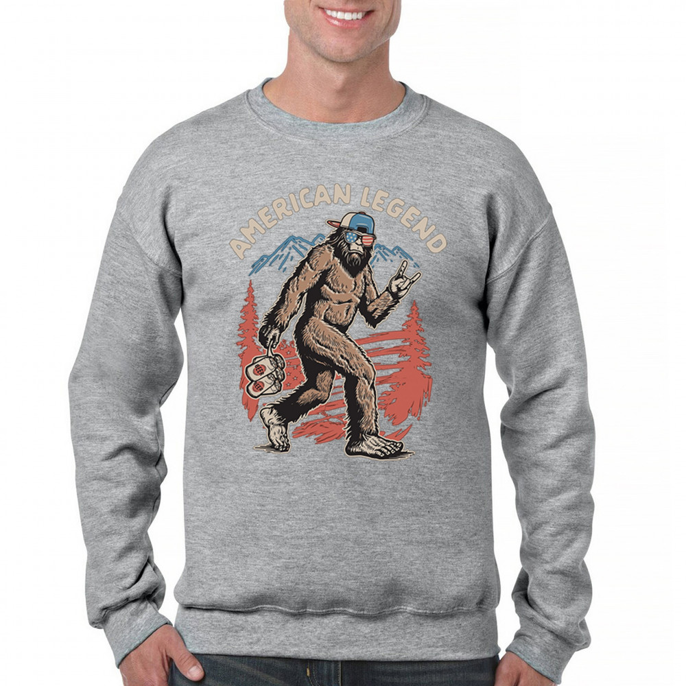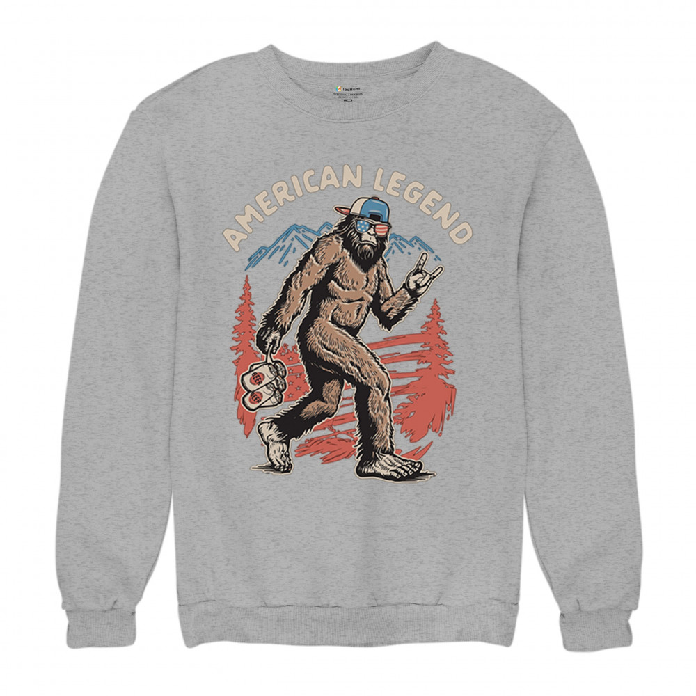 Funny Bigfoot design with patriotic flair—ideal for BBQs, beer lovers, campers, and cryptid fans who love to party in style!