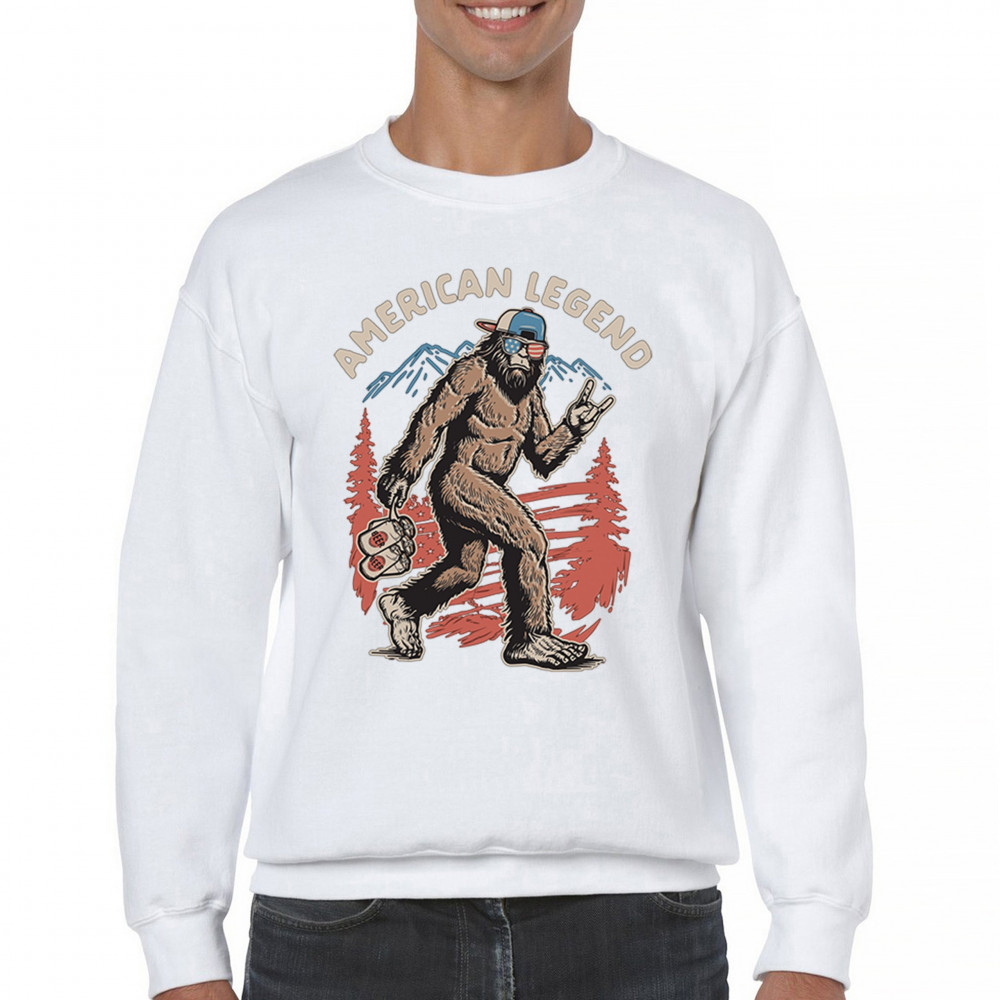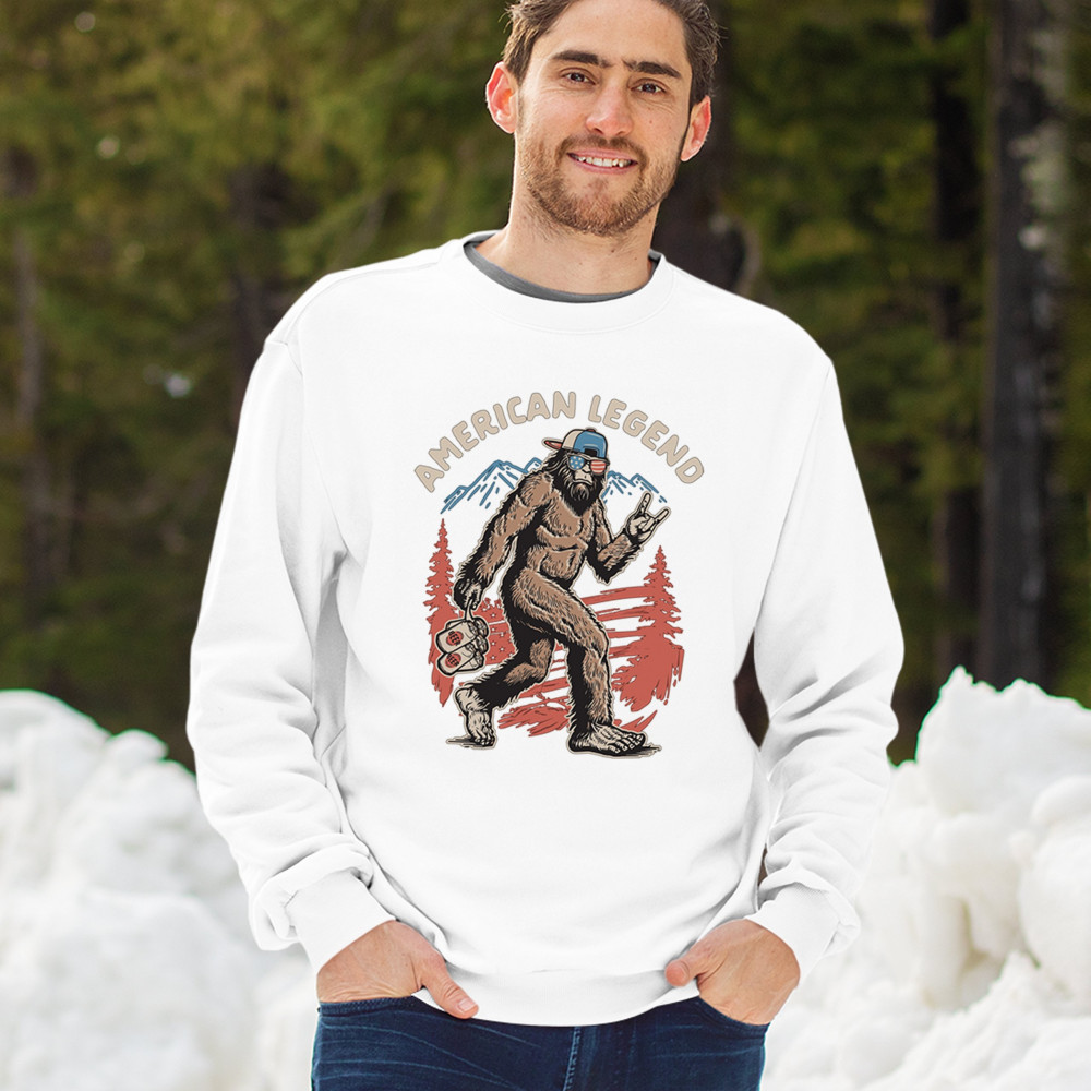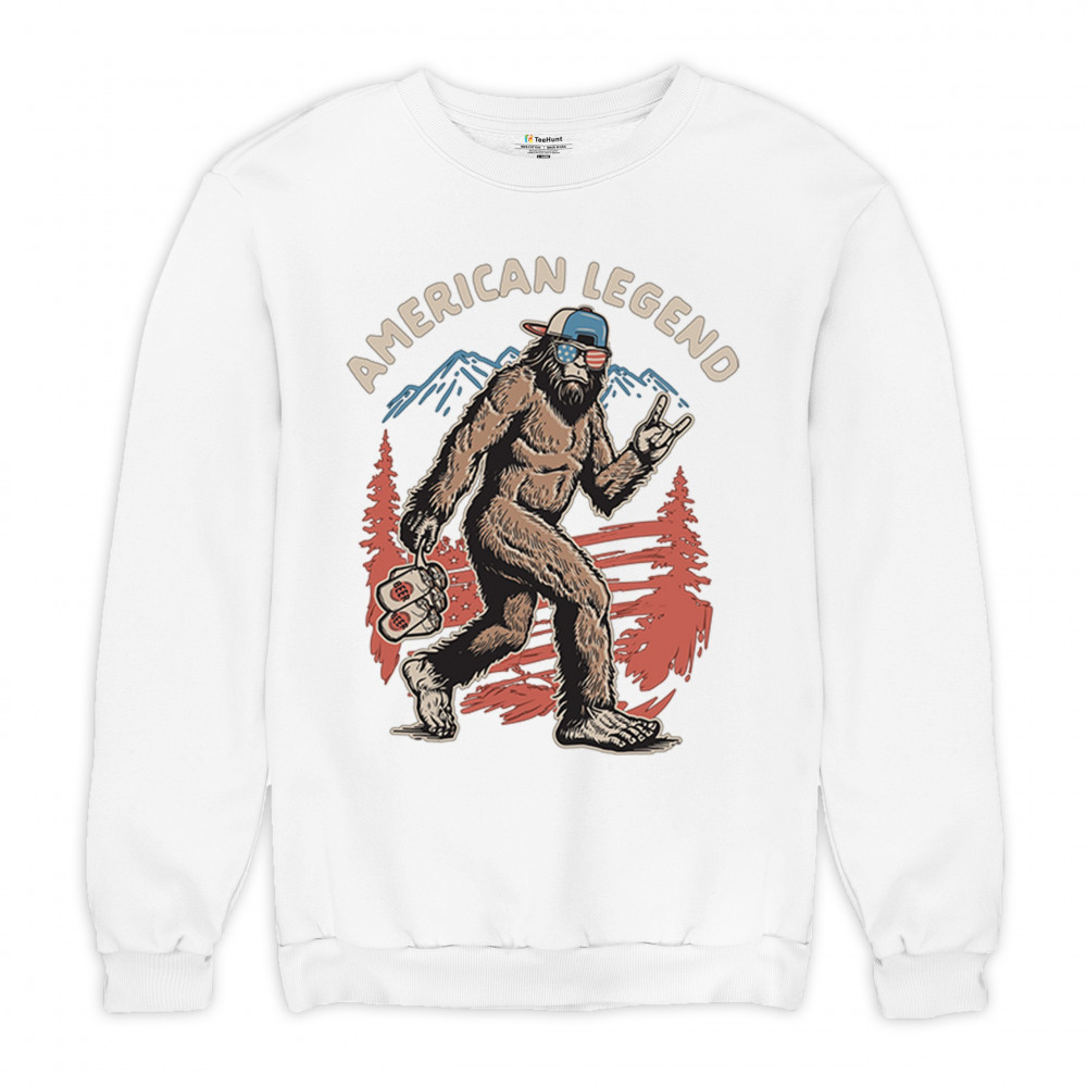 Funny Bigfoot design with patriotic flair—ideal for BBQs, beer lovers, campers, and cryptid fans who love to party in style!