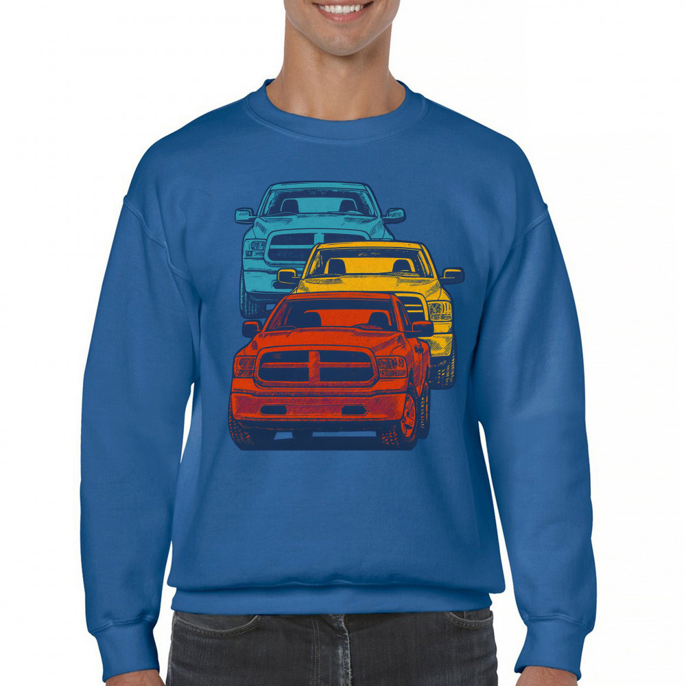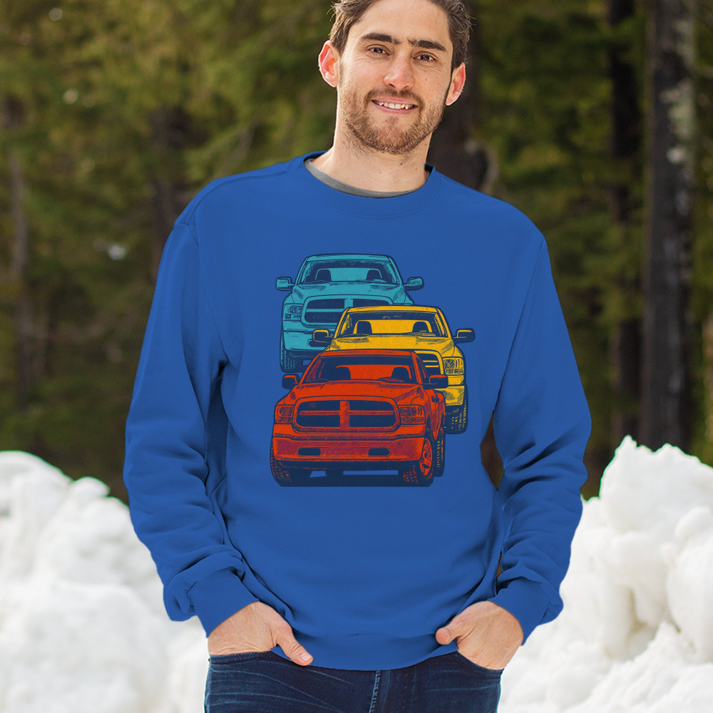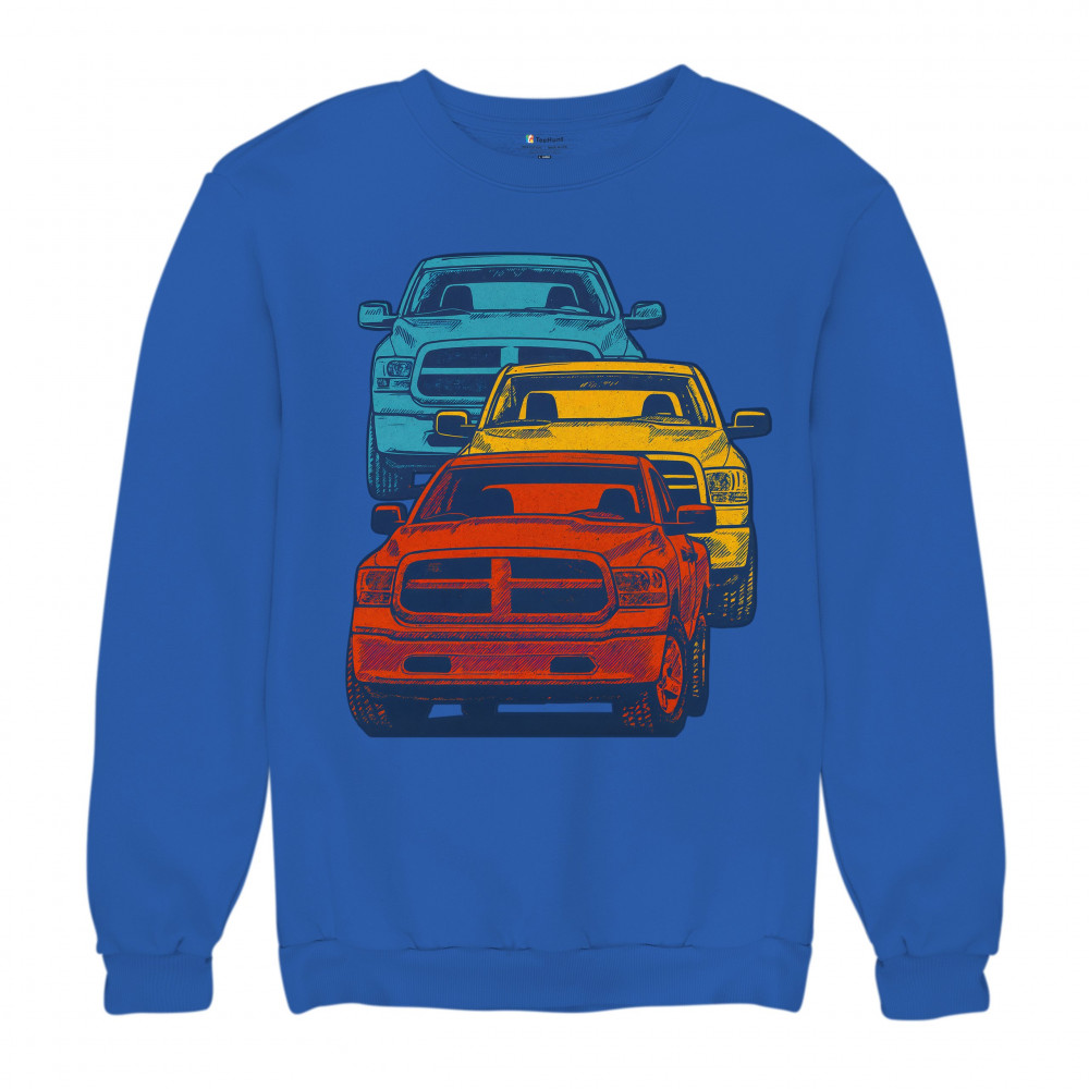 Boldly stacked and powerfully styled, this multicolor truck design showcases red, yellow, and blue pickups in a vertical formation. Made for fans of lifted truck culture, horsepower, and off-road pride, it celebrates diesel grit, road attitude, and the spirit of truck meets and gearhead unity.