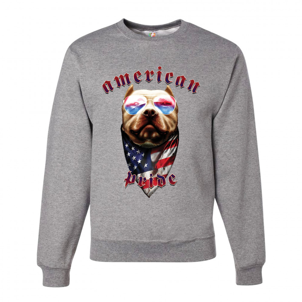 AMERICAN PRIDE PIT BULL sweatshirt us flag bandana patriotic dog lover crewneck gray