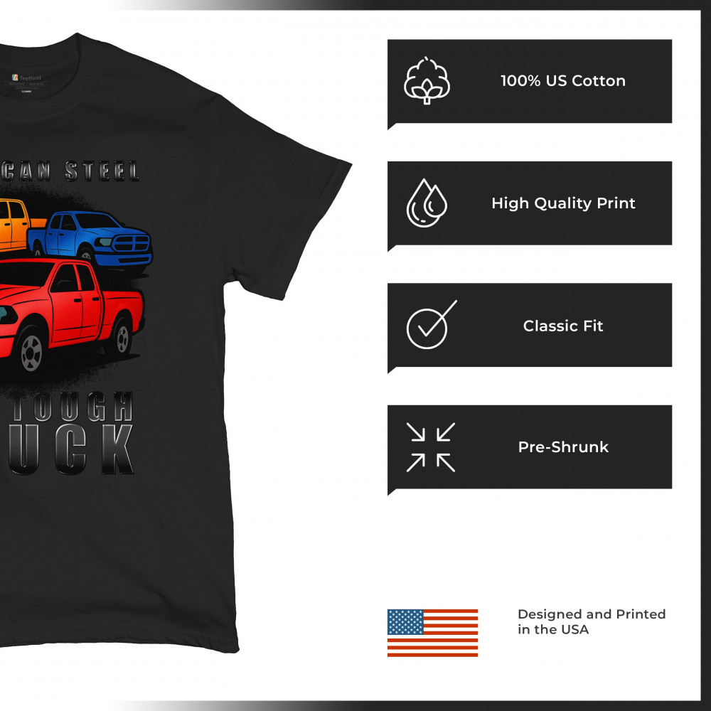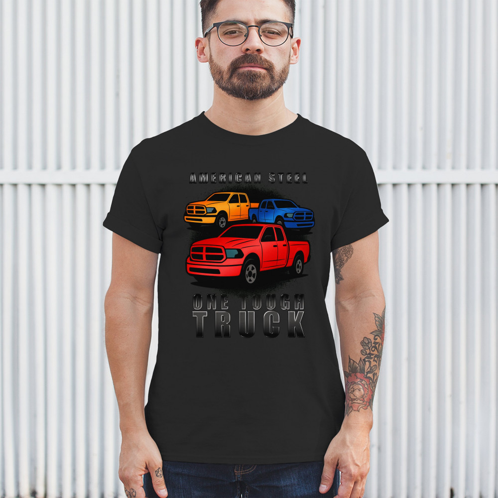 Celebrate the power of American steel with this rugged design featuring three bold pickup trucks in red, yellow, and blue. Made for gearheads, road warriors, and those who respect durability and performance. Perfect for truck shows, off-road events, and meetups.