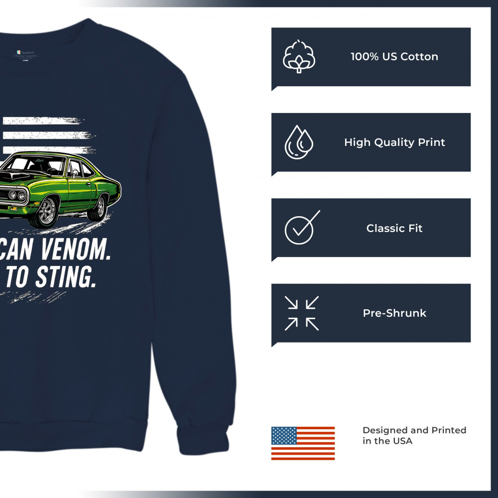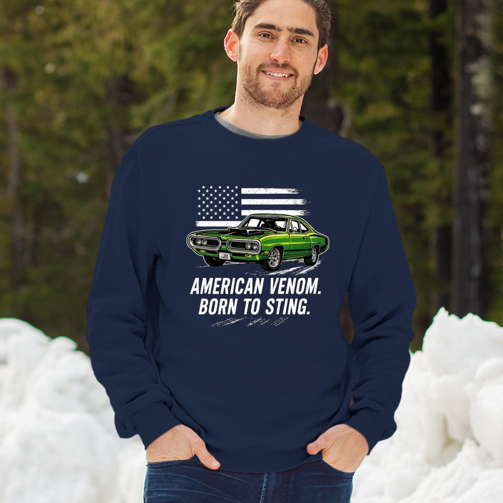 Inject venom into your street style with this bold green muscle car design. With “Born to Sting†power and a backdrop of American pride, this graphic is perfect for Scat fans, gearheads, and drivers who embrace speed, dominance, and the sound of true muscle. Rule car meets, rev battles, and highway runs with unmatched attitude.