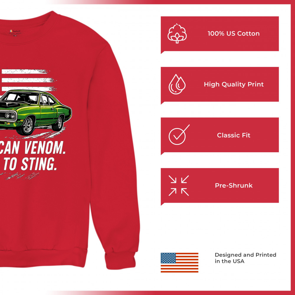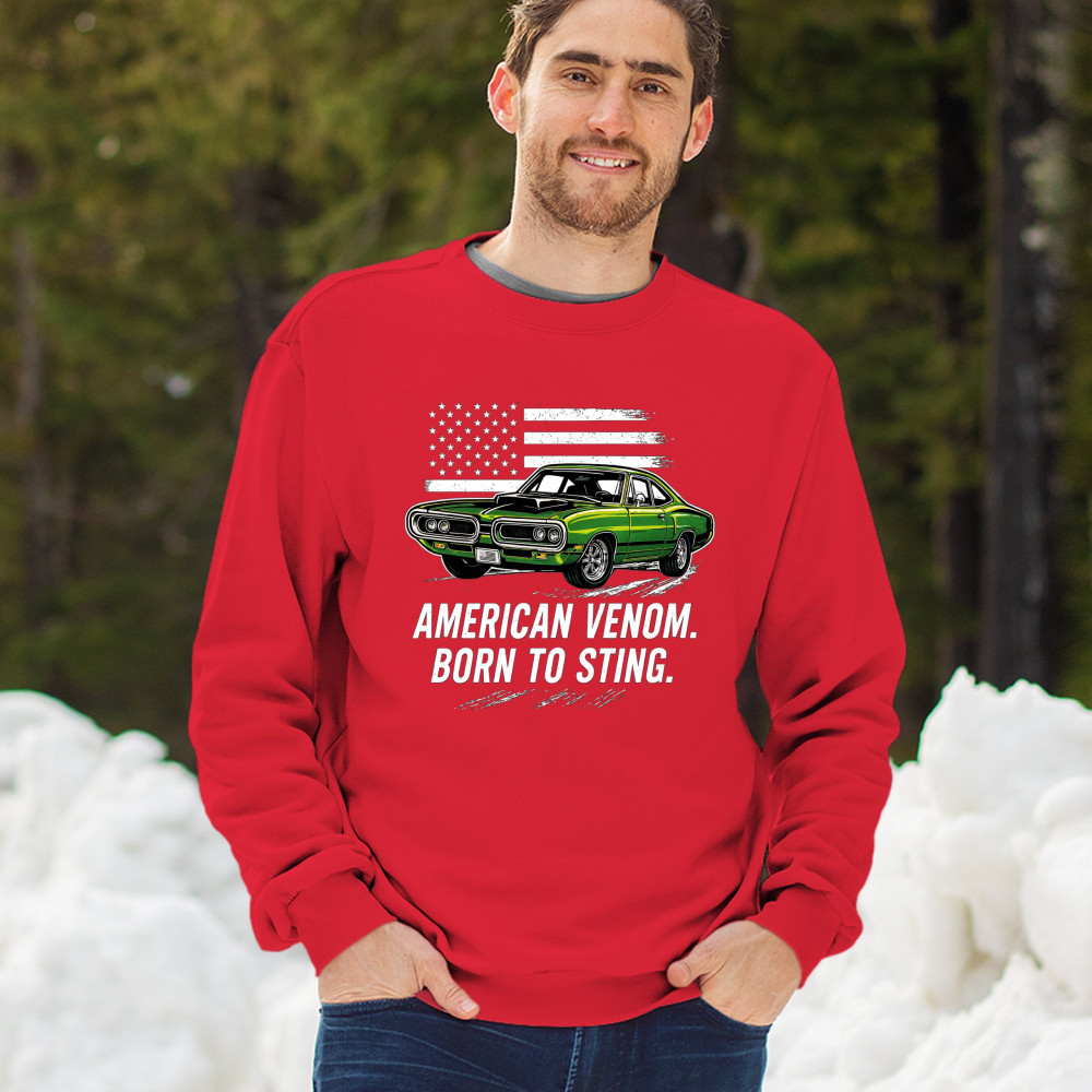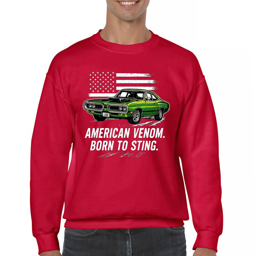 Inject venom into your street style with this bold green muscle car design. With “Born to Sting†power and a backdrop of American pride, this graphic is perfect for Scat fans, gearheads, and drivers who embrace speed, dominance, and the sound of true muscle. Rule car meets, rev battles, and highway runs with unmatched attitude.