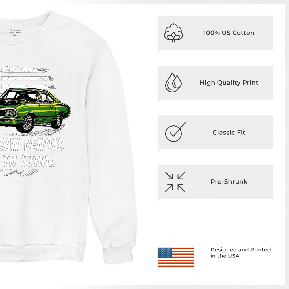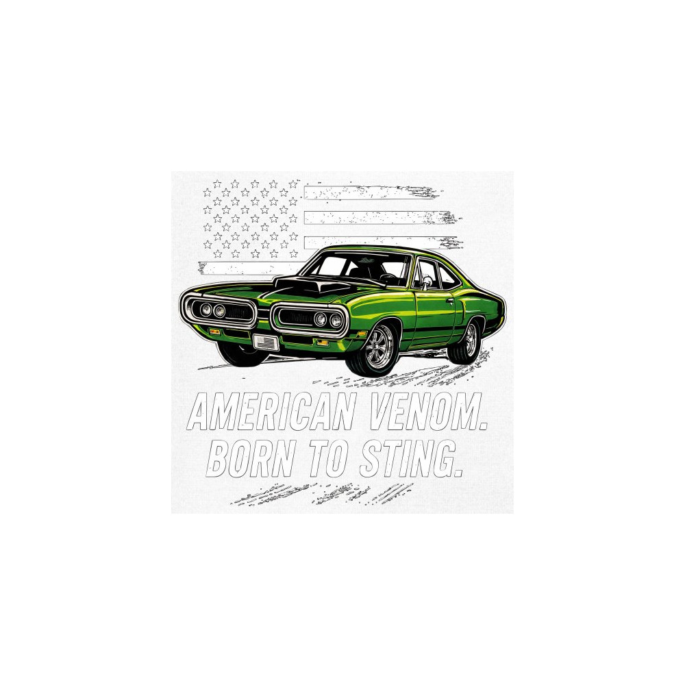 Inject venom into your street style with this bold green muscle car design. With “Born to Sting†power and a backdrop of American pride, this graphic is perfect for Scat fans, gearheads, and drivers who embrace speed, dominance, and the sound of true muscle. Rule car meets, rev battles, and highway runs with unmatched attitude.