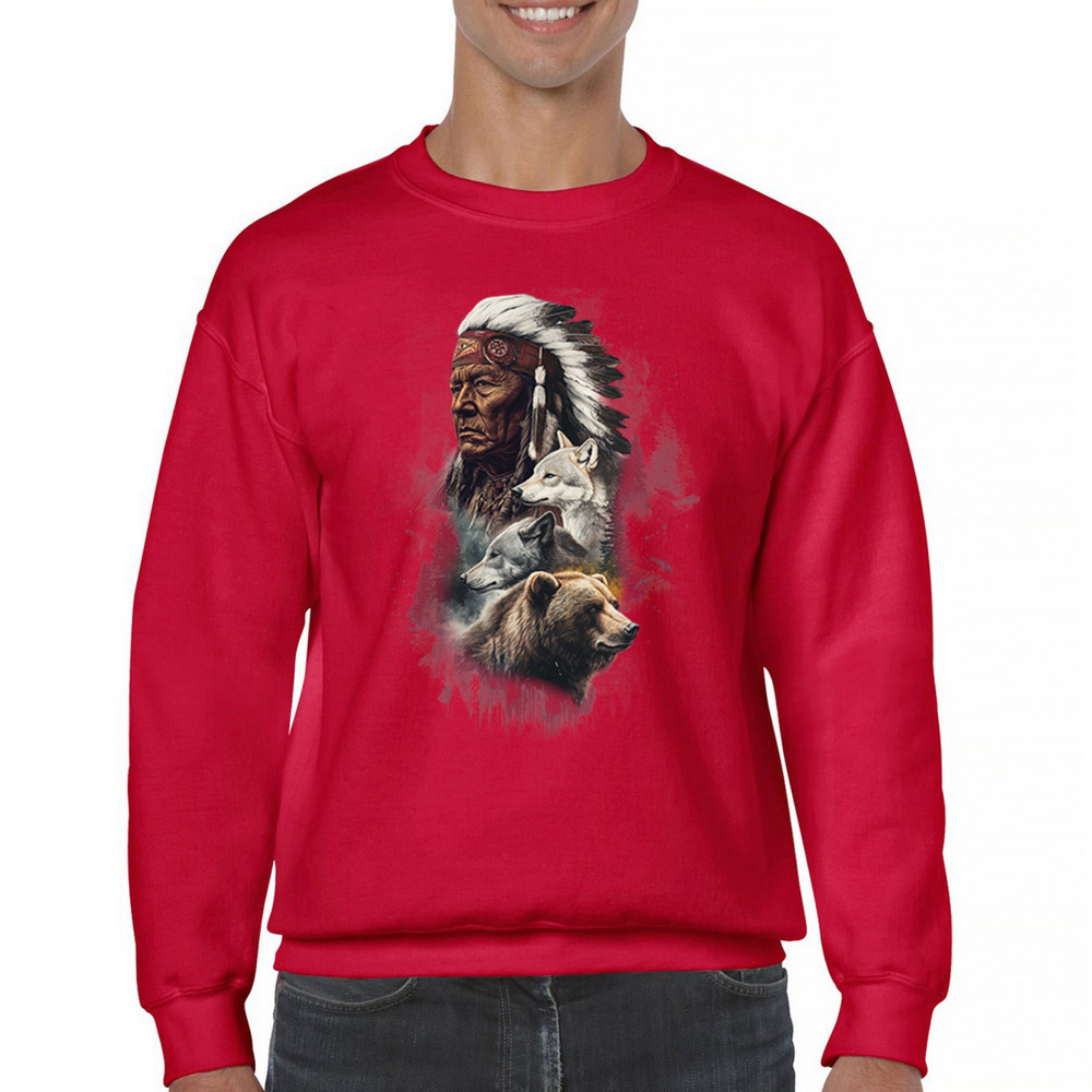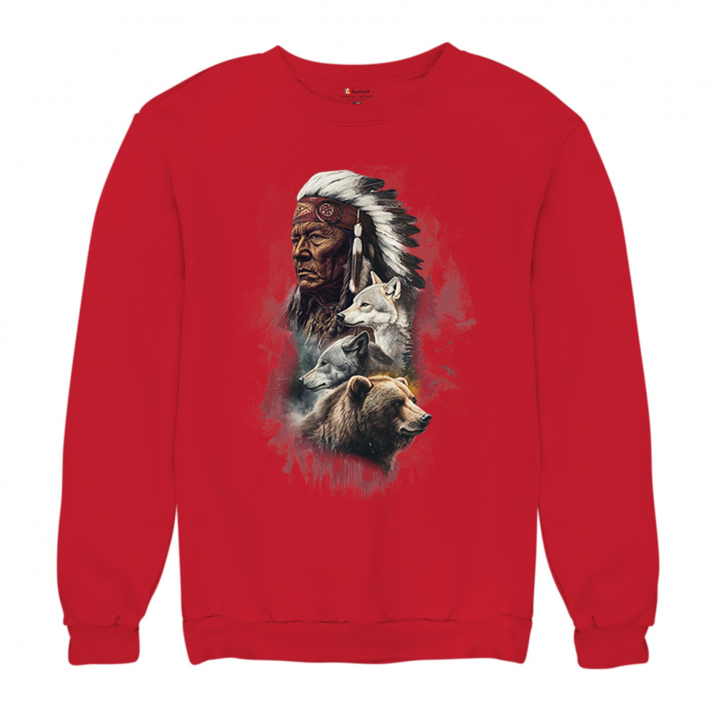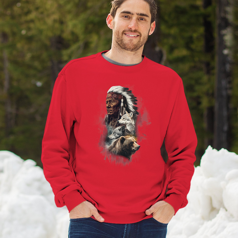 Celebrate spiritual strength and heritage with this design featuring a Native American elder alongside wolves and a bear. This tribal and totemic art reflects wisdom, guardianship, and deep forest spirit energy. Perfect for cultural pride, animal lovers, and those connected to spiritual symbolism in nature.