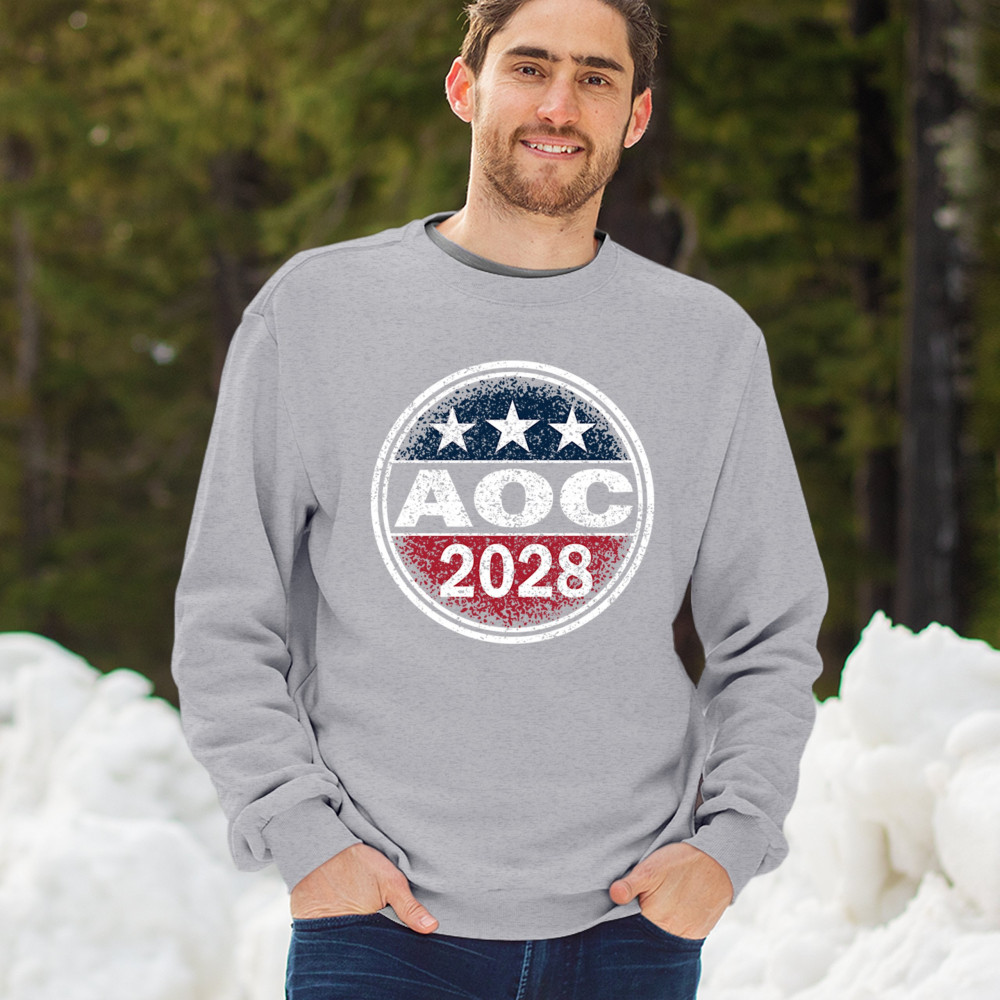 Show support for AOC 2028 with this patriotic distressed badge design. Great for progressives, rallies, events, and young political activists.