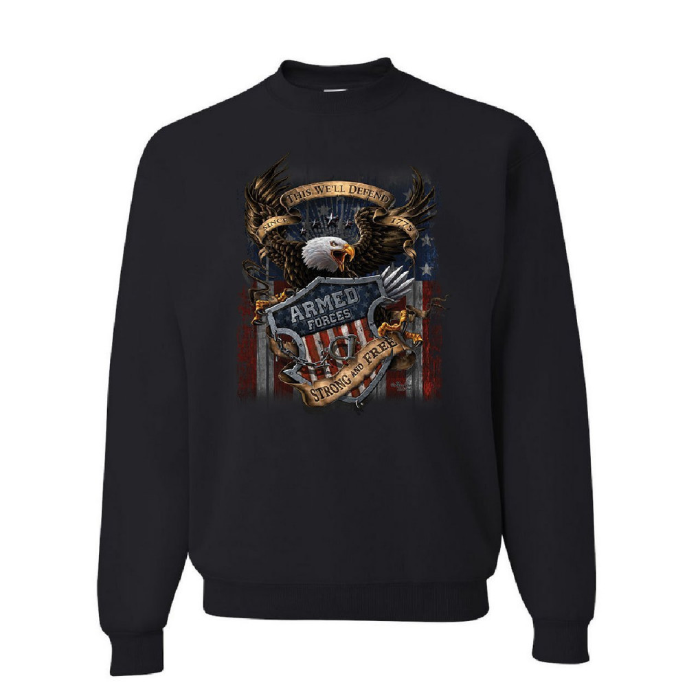 ARMED FORCES BALD EAGLE sweatshirt army this we'll defend us flag sweater black