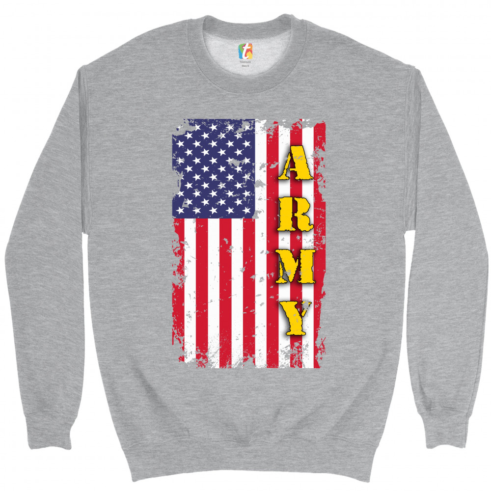 ARMY sweatshirt american flag united states armed forces patriotic crewneck gray