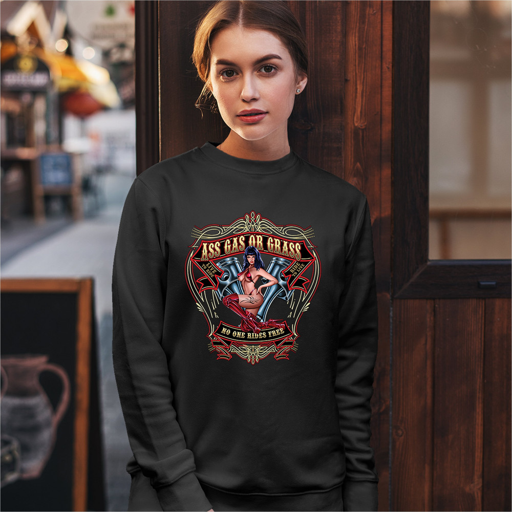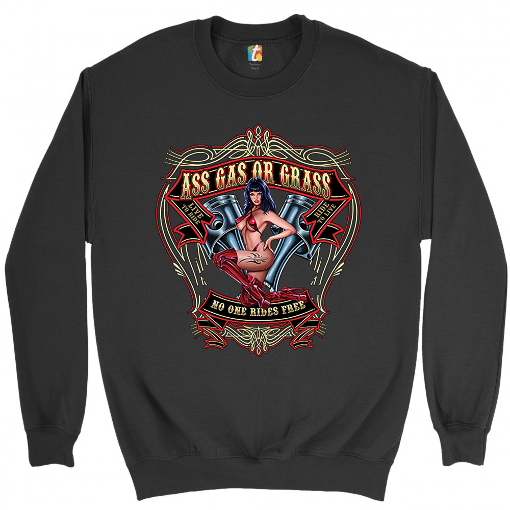 ASS GAS OR GRASS sweatshirt biker no one rides free live to ride crewneck black