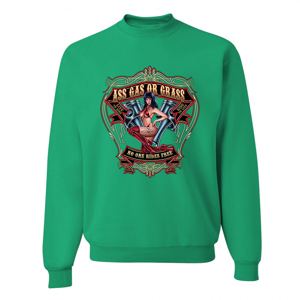 ASS GAS OR GRASS sweatshirt biker no one rides free live to ride crewneck green