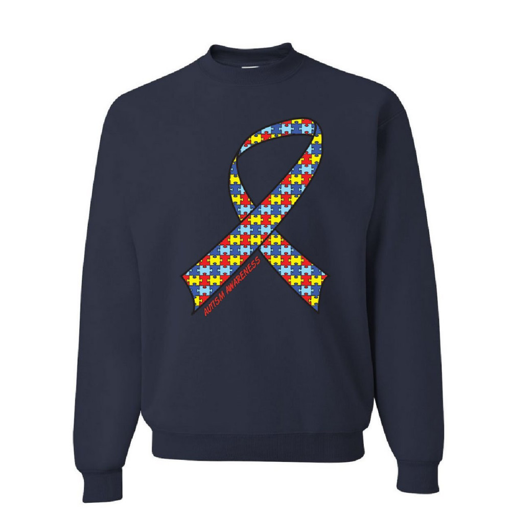 AUTISM AWARENESS RIBBON sweatshirt support care love asd asperger sweater navy blue