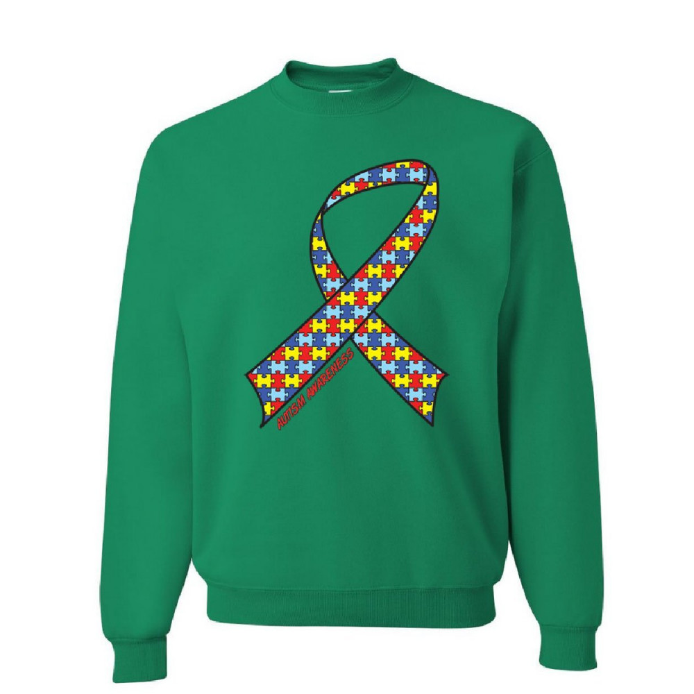 AUTISM AWARENESS RIBBON sweatshirt support care love asd asperger sweater green