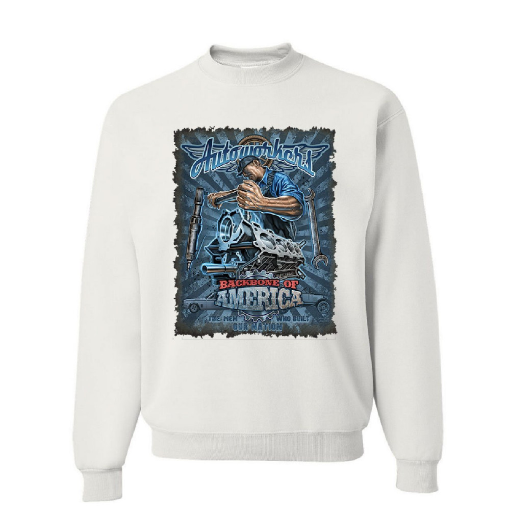 AUTOWORKERS - BACKBONE OF AMERICA autoworkers backbone of america sweatshirt car motor mechanic union sweater white