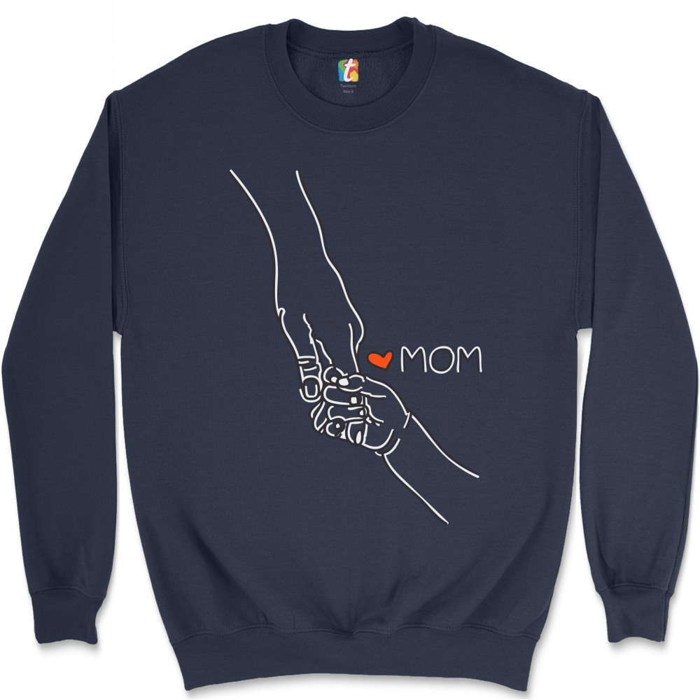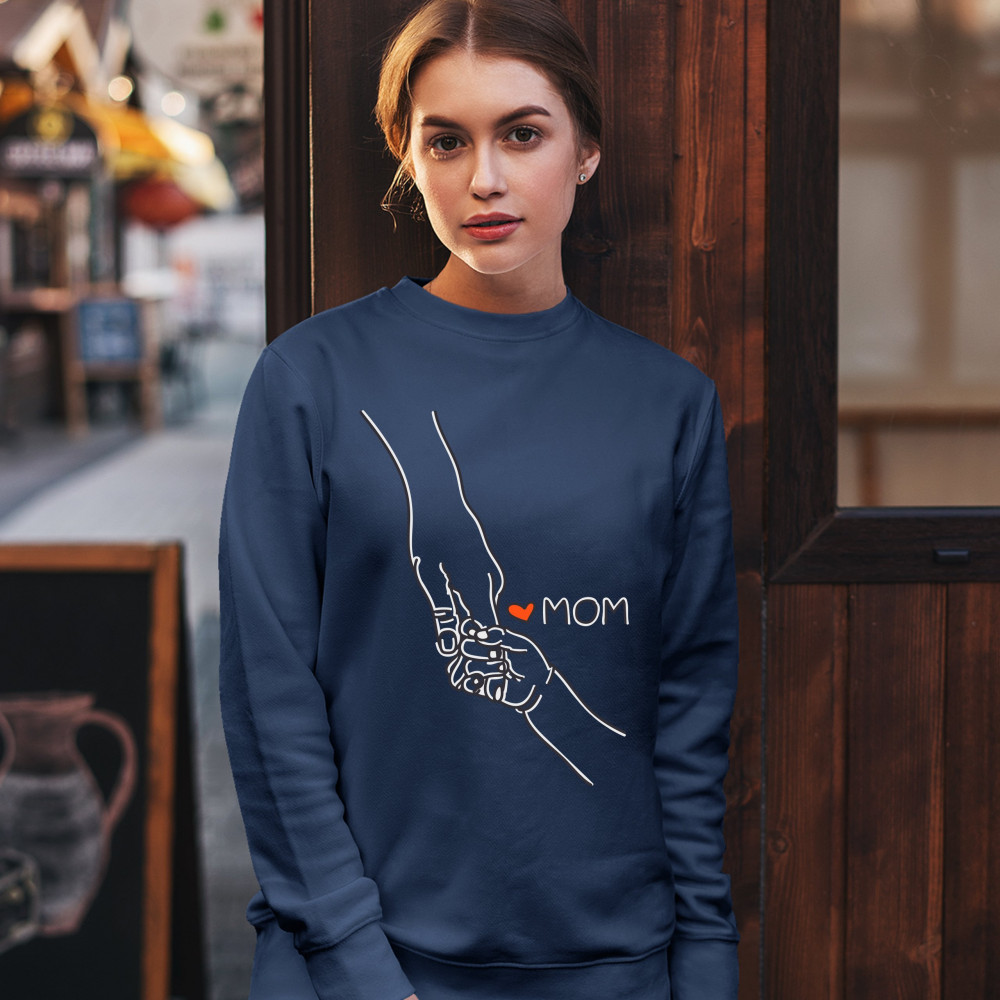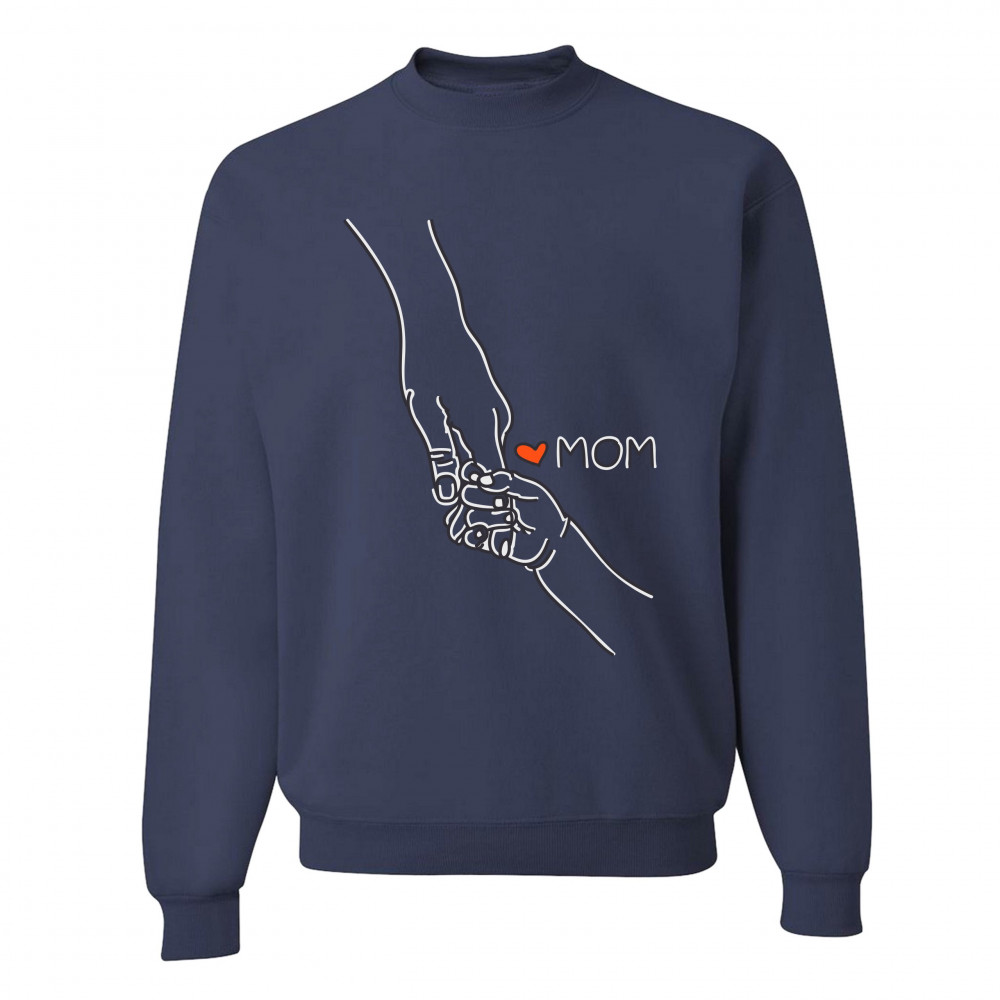 BABY HOLDING MOTHER'S HAND sweatshirt i love my mom mother's day crewneck navy blue