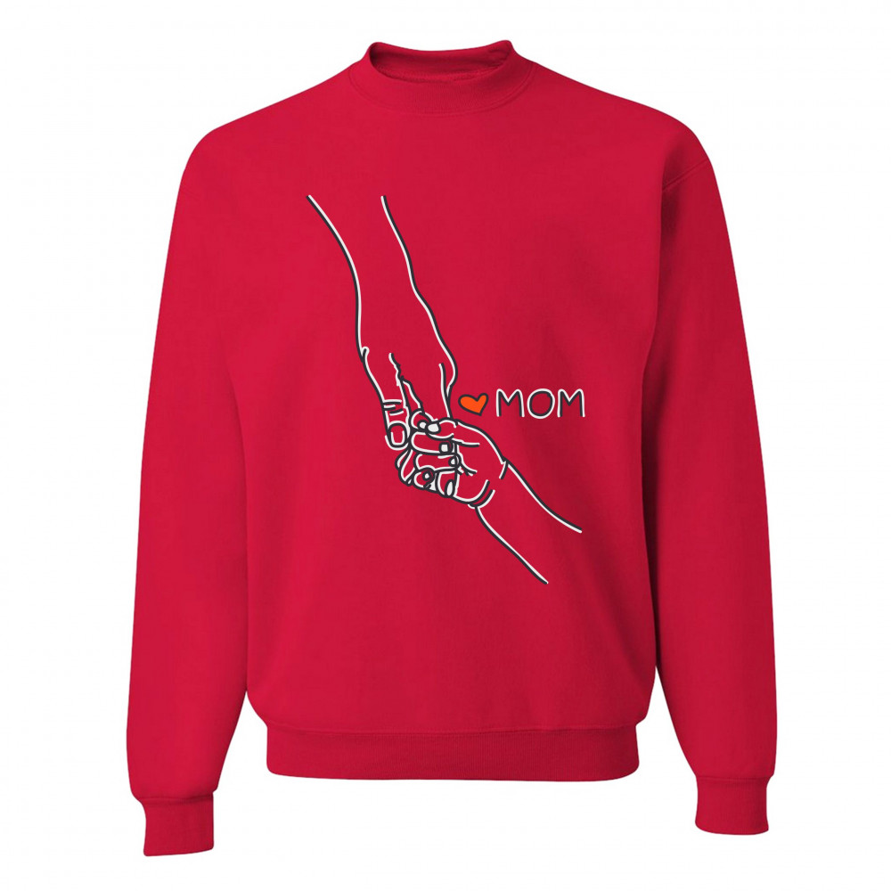 BABY HOLDING MOTHER'S HAND sweatshirt i love my mom mother's day crewneck red